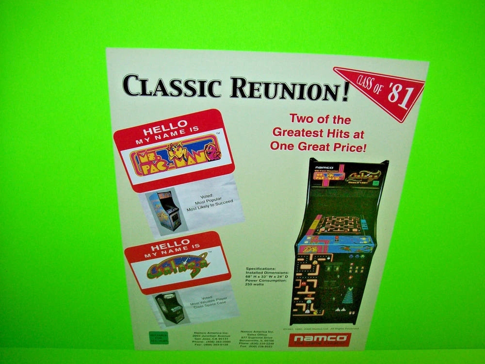Ms Pacman Galaga Classic Reunion 2000 NOS Video Arcade Game Sales Flyer #2