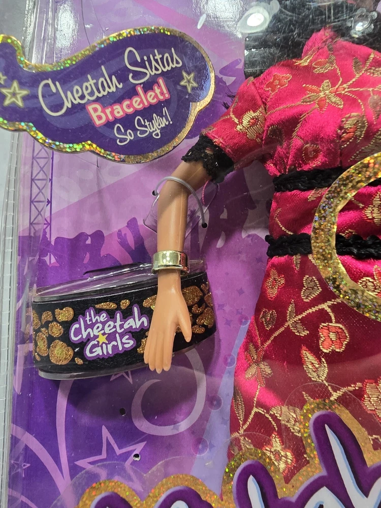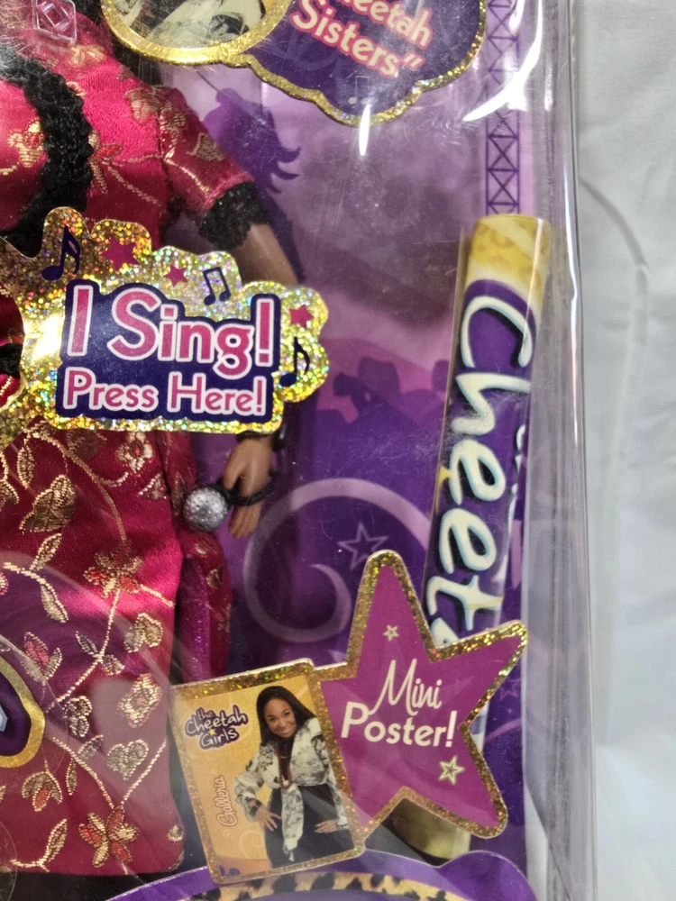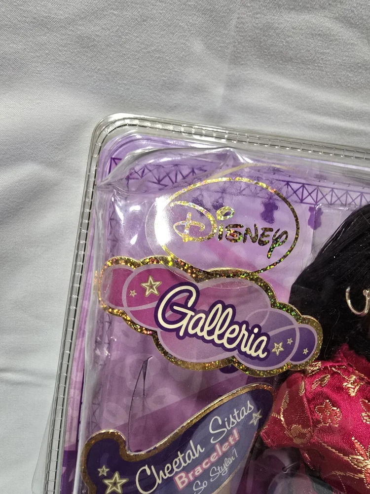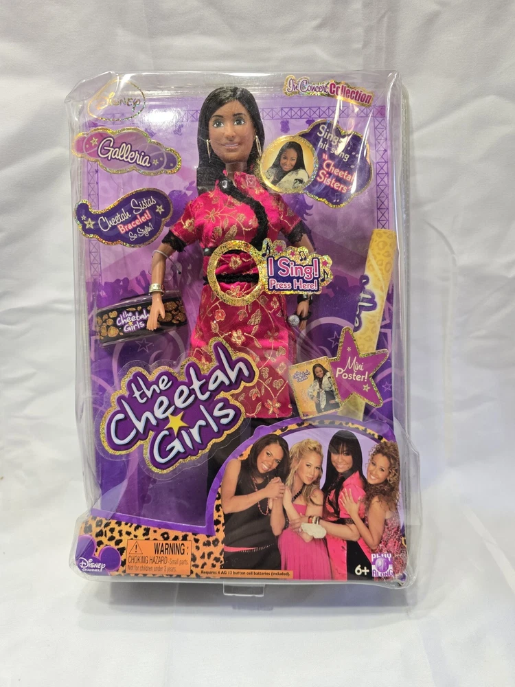 Doll is new in packaging but packaging has damage. Please see pictures. Batteries are dead, once replaced doll sings. The "Cheetah Girls In Concert Collection Galleria Raven Symone Doll" from 2007 is a fashion doll featuring the character Galleria from "The Cheetah Girls" franchise. This battery-operated doll has black hair, brown eyes, and a medium dark complexion. It is part of the Disney Barbie Dolls product line and comes in its original packaging. The doll is African American and manufactured by Play Along under the Disney and Cheetah Girls brands.