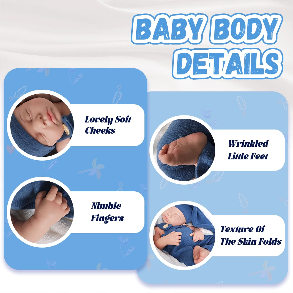 Muñeca Género: Boy Doll Características: Extremidad anatómicamente correcta, flexible, juguete de coleccionista, ojos cerrados, sensación realista, no tóxica, ropa extraíble, cuerpo suave, lavable, resistente al agua Año de fabricación: 2023 Estado del artículo: Nuevo Tez de muñeca: Luz Ocasión: Todas las ocasiones Tamaño de la muñeca: 20 pulgadas Período de tiempo fabricado: 2020-presente UPC: No se aplica gtin13: Does not apply Tipo de pelo de muñeca: Sin pelo brand: Unbranded MPN: No se aplica Peso del artículo: 3100g Antiguo: No Número de piezas: 1 Embalaje: Sin embalaje Unidad de venta: Unidad única País/región de fabricación: China Hecho a mano: Marca: Sin marca Material: Silicona Nivel de edad: 2 años Tipo: Muñeca recién nacida Longitud del artículo: 20 pulgadas Tema: Bebés El juego incluye: Muñeca Grupo de edad de la muñeca: Adultos, adolescentes, unisex bebé y niño pequeño, jóvenes