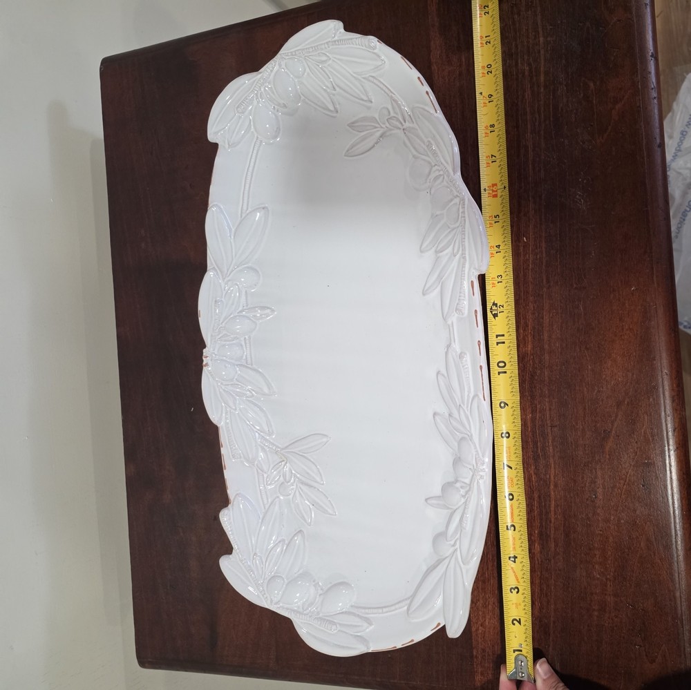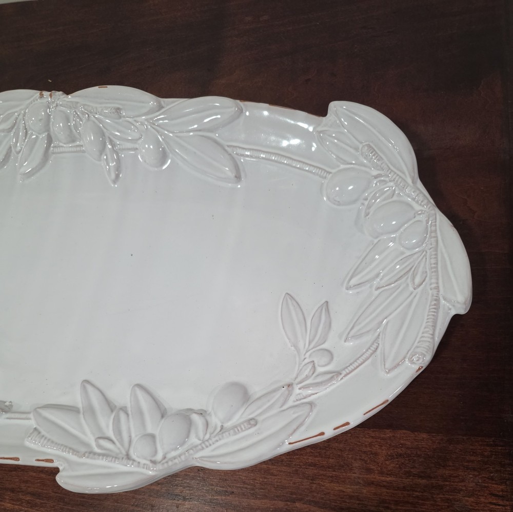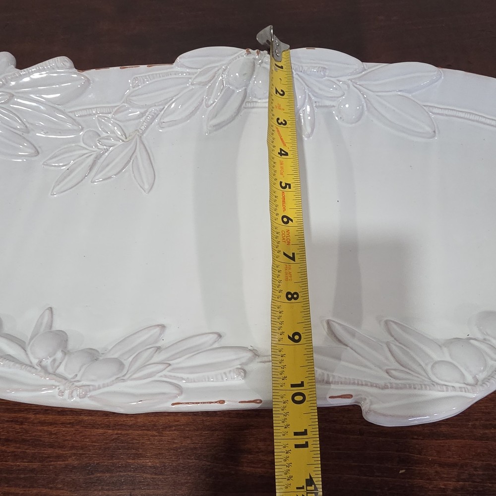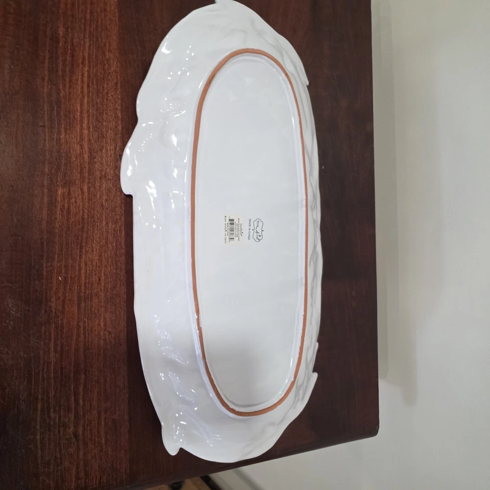 The Mud Pie Ceramic Oval Platter is a stylish and versatile serving piece perfect for any occasion. Made of glossy white ceramic, this large oval platter adds a touch of elegance to your dining table or entertaining space. Its classic design makes it suitable for all occasions, and the brand's reputation ensures quality and attention to detail. Whether you're hosting a dinner party or simply looking to add a decorative touch to your home, this Mud Pie platter is a perfect choice.