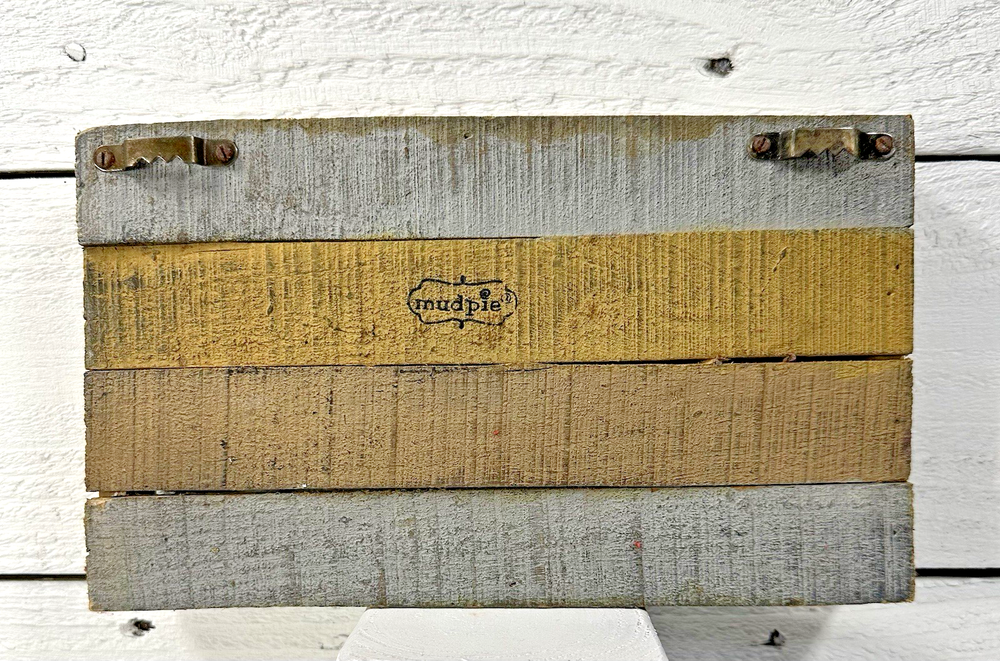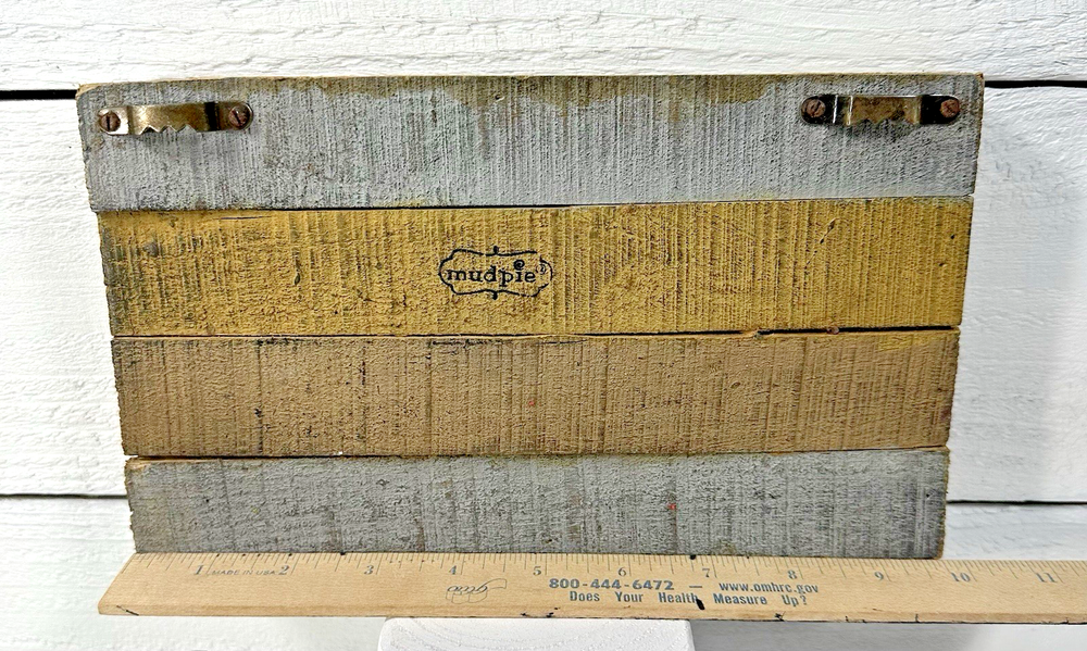 Measuring approximately 9-3/4" long x 5-1/2" tall x 1-1/2" front to back. Add a touch of rustic charm to your kitchen with this Mud Pie EAT sign. The wooden sign features a rectangular shape with a brown finish and silver-tone letters that spell out "EAT". This sign can be hung on the wall or placed on a shelf as a decorative piece. Perfect for a farmhouse or café & bistro themed kitchen, this sign is a great addition to your home decor. The sign is made of high-quality wood and metal materials and does not require any additional parts to function. Personalize your kitchen with this unique and stylish sign that is sure to impress your guests Please refer to all photos for adequate description of product. Smoke free home. Handling time - 2 business day, once payment clears item will be shipped