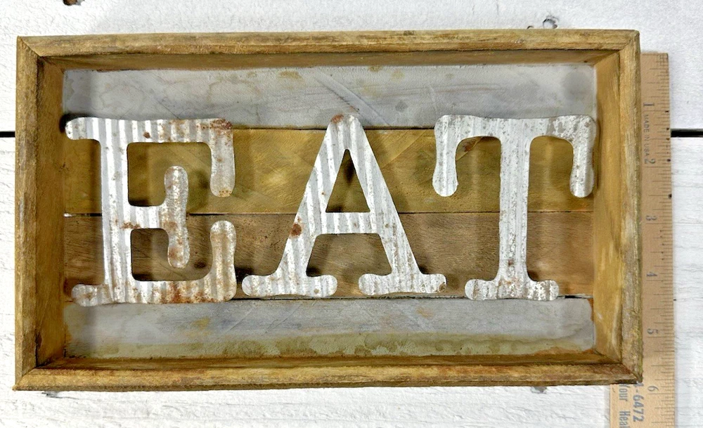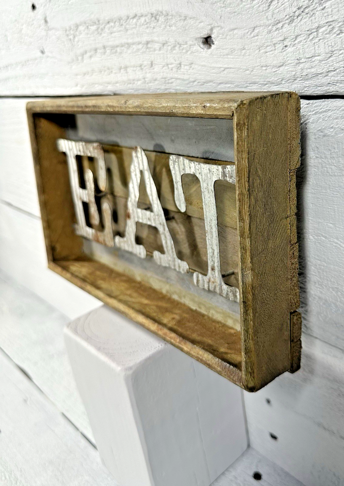 MudPie EAT Wall Sign Shelf Sitter Wood Metal Indoor Outdoor Decor