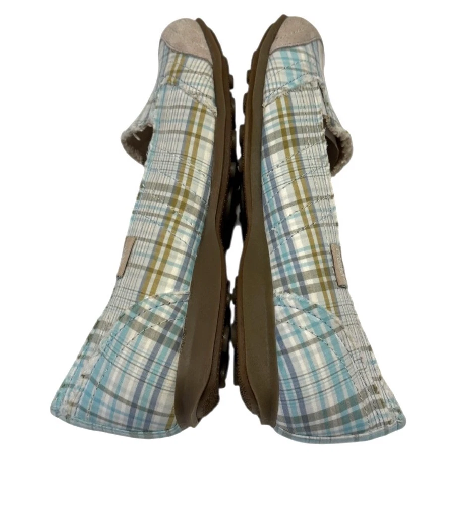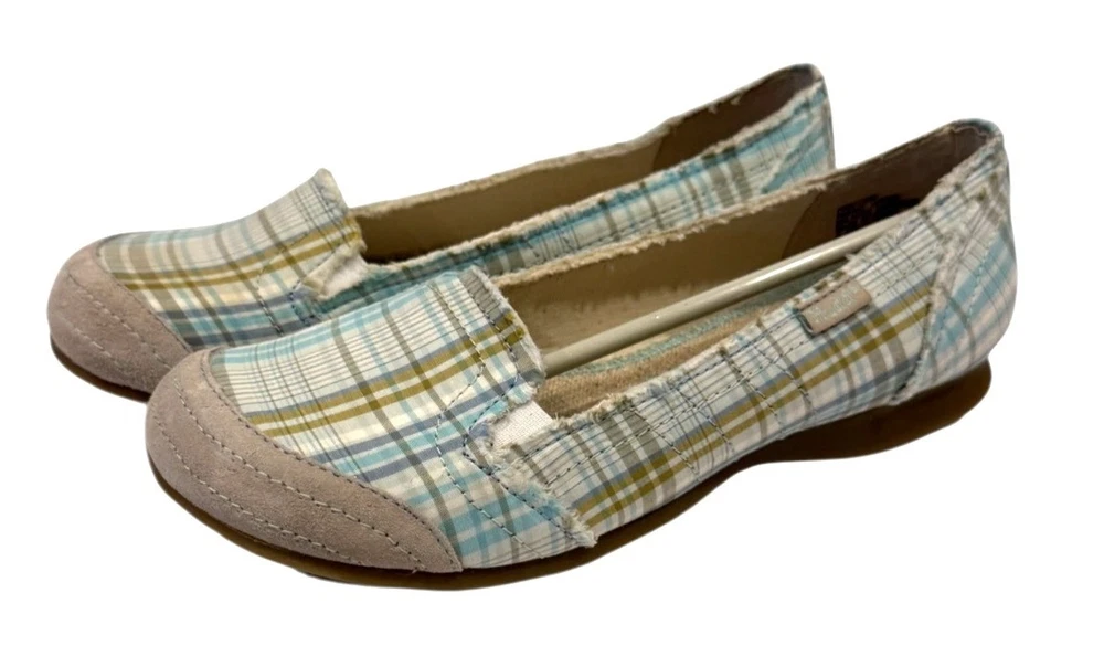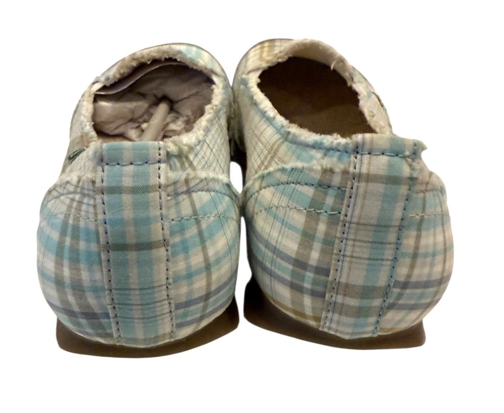 Elevate your style with these Mudd Women's Preform Plaid Flats, offering a natural look in a comfortable size 9.5. Perfect for casual outings or work attire. • Rounded Suede Toe • Raw Edge • Textured Sole - Size - 10M - Color - Green Plaid - New without box. NO flaws - Smoke free home