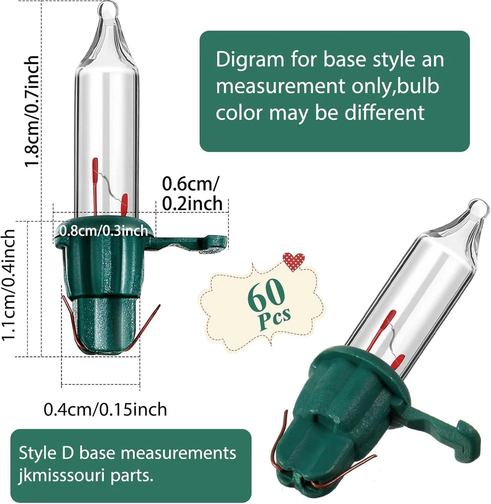 Store New Arrivals Add to Favorite View Feedback Contact Mudder 60 Count Replacement Christmas Tree Light Bulbs 2.5V 0.425 Watt Replacement Bulb Mini Incandescent Wire String Lights Decoration for Prelit Xmas Tree(Green Base with Warm White Bulb) Description Light Source Type Incandescent Number of Items 1 Power Source Corded Electric Country of Origin China Power Consumption 0.43 Watts Controller Type touch Unit Count 1.0 Count Light Source Wattage 0.43 Watts Batteries required No Product Dimensions 3.94"W x 0.79"H Material Polyvinyl Chloride Efficiency 157.4 lumens per watt Specific Uses For Product Decoration Manufacturer Mudder Item Package Quantity 60 White Brightness 68 Lumens Indoor/Outdoor Usage Outdoor, Indoor Light Type Incandescent Brightness 68 lumens Control Method App Light Color warm white Item Weight 1.44 ounces Connectivity Technology Normal bulb Color Rendering Index 80 Bulb Base B22D Color Green Base With Warm White Bulb Incandescent Equivalent Wattage 0.5 Watts Shape Tubular(T) Voltage 2.5 Volts Finish types Clear Brand Mudder Incandescent Christmas Mini Lights Package: enough replacement mini light bulbs will give a soft festive feel to your Christmas; These beautiful string lights bulb are 2.5 volts, 0.425 watts, 0.17 ampere, apply to 50/100/150/200 Count incandescent Wire String Lights, please check the specs on your own lights carefully before purchasing Quality and Safety: the incandescent mini Christmas lights are made of quality materials and exquisite workmanship, safe to use, suitable for Christmas trees, indoor, outdoor, party decorations; The diameter of the bottom of the base is 0.4 cm/0.16 inch, the height of the base is approximately 1.1 cm/0.4 inch, and the diameter at the interface between the base and the bulb is approximately 0.7 cm/0.28 inch; You need to determine whether the light string is suitable based on this size How to replace: first, keep your light set unplugged, and take out the broken light with its base and throw it away, next, check that the two wires of the new bulb are properly positioned on either side of the base (do not let them cross or touch), then, insert the new light at a right angle and make sure it's pushed in completely, and last, plug the set back in to see if you are successful Warm White Lights: our christmas lights feature warm white glowing lighting effect, creating a warm and romantic festive atmosphere, pick the color that suits your usage scenario, suitable for artificial Christmas tree, wreaths and garlands light bulbs well, ideal for replacing existing bulbs that have burn out or grown old Outdoor and Indoor Christmas Decorative Lights: ideal for indoor and outdoor decorations, Christmas, Halloween party, Valentine's Day, wedding, home, window, bathroom, festival, holiday, shows, restaurant, hotel, commercial building, shopping center, trees, wreaths, wrapping trees, patios, pergolas, bushes, hedges, fences, pillars, and more Product Description ABOUT US We offer the best prices around on high quality products. Our E-store includes media such as books, movies, music and games while offering electronics, toys, sporting apparel, clothing, tools, general home, garden items and more. SHIPPING We are always working hard to ensure your package arrives as soon as possible. Please understand that some factors like weather, high postal traffic, and the performance of shipping companies are outside of our control. We offer free shipping to the lower 48 states and ship within 2 business days of payment, usually sooner. We do not accept P.O. Boxes. Please provide a physical address. RETURNS We offer a 30-Day Return Policy on items which you are not completely satisfied with. You have the option for a full-refund or an exchange of the item. No returns are available on items shipped outside of the USA. PAYMENT We accept PayPal. CONTACT US This page content is yet to come Please ad us to your favorite seller and visit again later Thank You CUSTOMER SATISFACTION We try our very best to make sure every customer is completely satisfied. If there's a problem, message us! We're happy to help.