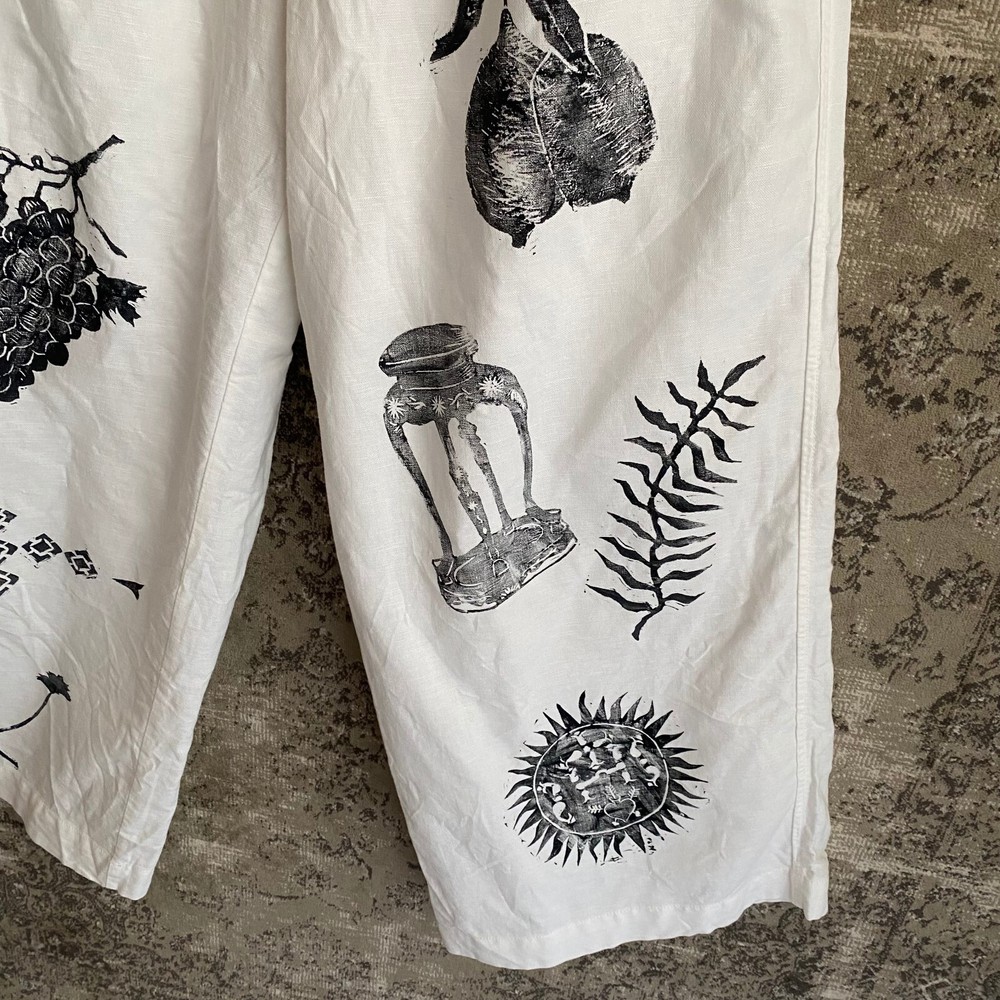 Free eBay listing template designed by dewiso.com Return We will issue 20-50% refund depending on a returned item condition.Return item has to be in the same condition as we shipped.Lacking of accessories is not acceptable.Also no refund issued if a returned item is not what we sent or what you described. Shipping Shipping within 10 business days by FedEx, Japan Post Transport after receiving payment. Contact We can be contacted at any time through eBay messages if you have any questions, comments, or product requests. We will usually respond to you within 24 hours during business days and do our best to help you out! PRODUCT DETAILS mui Hand Printed Block Printed Linen Cotton Wide-Leg Pants Unisex White Okinawa Condition: Pre-owned. There are slight signs of use, but no noticeable damage. May display signs of previous use consistent with vintage clothing. Refer to photos for exact condition. Details: This is a block print work by the artist mui from Okinawa(JAPAN) Block-printed on Used Gap pants. Each piece is hand-printed with motifs inspired by Okinawan plants and animals, old pottery, and Hajichi tattoos that women in old Okinawa used to wear as a sign of adulthood. Color: White Material: 55% Linen 45% Cotton Size: Model 170 cm (5'7") and 69 kg (152 lbs) The measurements are taken with the garment laid flat. Actual size: Waist (no elastic): 39 cm (15.4 inches) Length: 98.5 cm (38.8 inches) Hip: 50 cm (19.7 inches) Rise: 28 cm (11.0 inches) Thigh: 35 cm (13.8 inches) Inseam: 74 cm (29.1 inches) Hem width: 33 cm (13.0 inches) Please feel free to contact us if you have any questions. OKW000881 About Us At IRODORI Works japan, we are committed to offering high-quality products at the best prices possible. We take customer service very seriously. If you have questions about any item we sell, please send us a message. We stand behind every single product we sell and want to hear from you if are not fully satisfied with anything you receive from us. Payment All payments are handled by eBay through their platform. Shipping Standard shipping: Ships by DHL (with tracking number) Depending on the region, it may be shipped by JAPAN POST . It will arrive in 5-10 days after shipping. Economy shipping: Shipped by e-packet (with tracking number) Depending on the region, it may be shipped in small packets. It will arrive 14 to 21 days after shipment. Handling time: Ships within 10 business days of purchase. Business Days We are open Mondays to Fridays . Our office is closed on Saturdays, Sundays, and Japan Public Holidays . Disclaimer Import duties, taxes, and charges are not included in the item price or shipping cost. These charges are the buyer's responsibility. Please check with your country's customs office to determine what these additional costs will be prior to bidding or buying. Free eBay listing template designed by © dewiso.com .