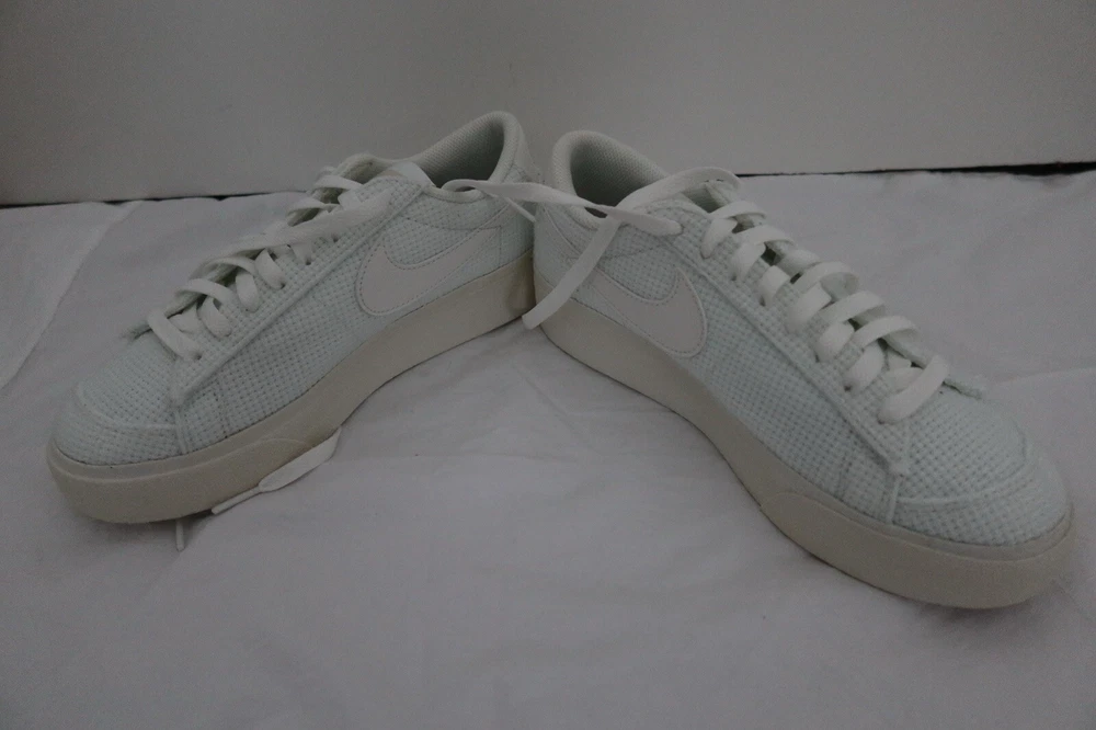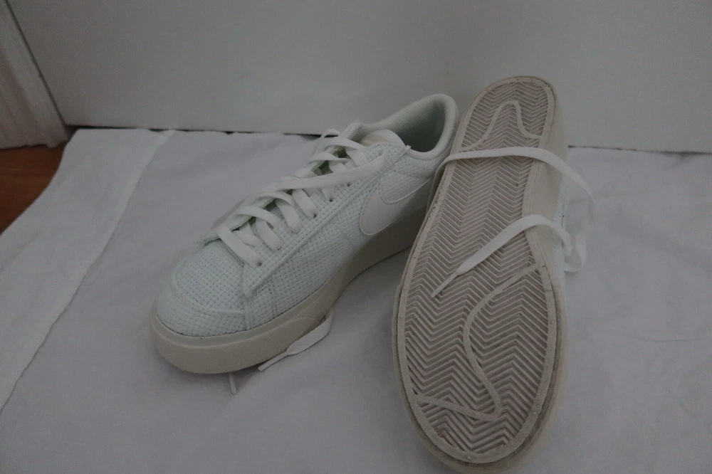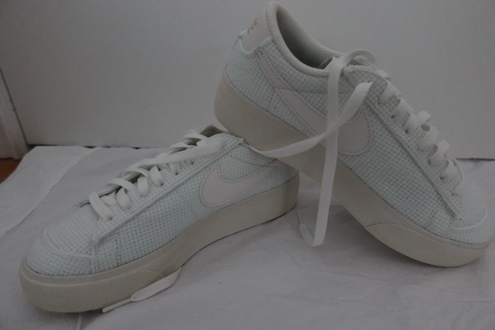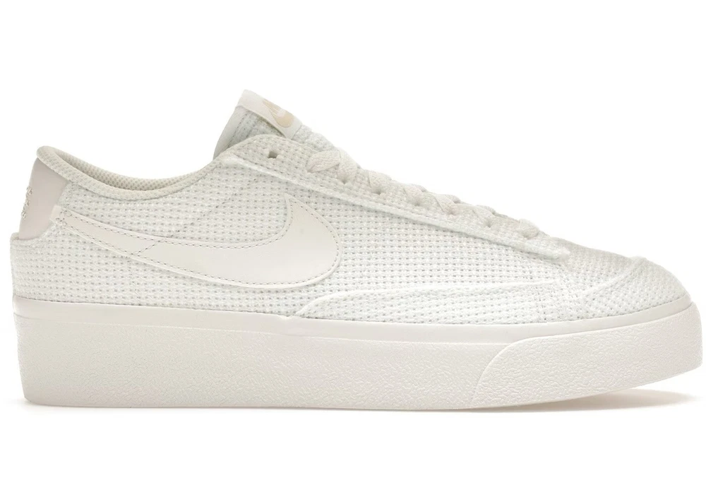 The product is a pair of Women's Nike Blazers in a white colorway, featuring a platform sole and a woven fabric type. The Summit Blazers model offers a unique and stylish sneaker option for women seeking a blend of athletic functionality and fashionable design. With a US shoe size of 8, these sneakers are perfect for those looking for a comfortable and trendy addition to their footwear collection.