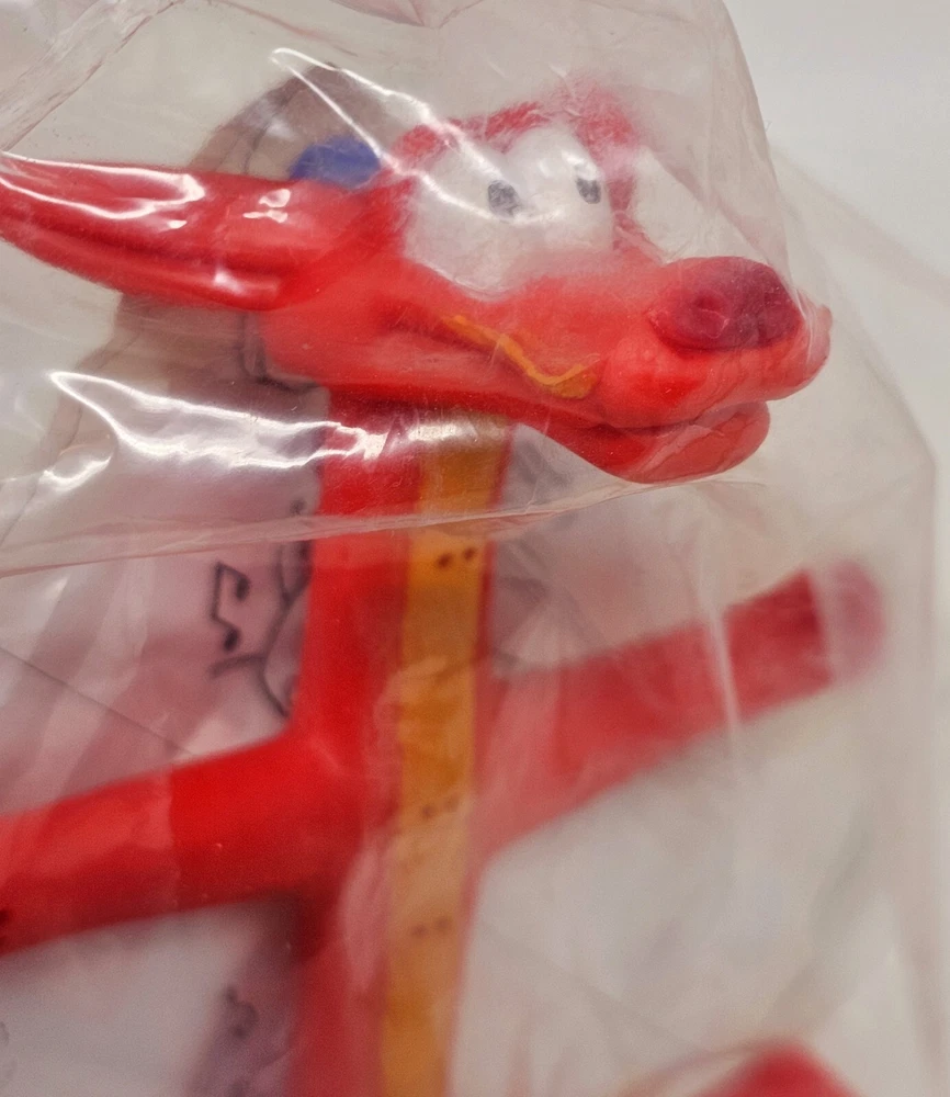 This vintage Mulan Disney McDonald's Mushu Red Dragon Rubber Bendable Bendy Figure is a must-have for collectors and fans alike. With its unique design and attention to detail, this toy is sure to bring back memories of the beloved animated movie. The figure was originally released in 1999 and was manufactured in Hong Kong. The bendable Mushu dragon figure features the beloved character from the Mulan movie and is part of the Disney McDonald's collection. It is perfect for display or play and is sure to be a conversation starter. Don't miss your chance to own this sealed and unopened piece of Disney history.