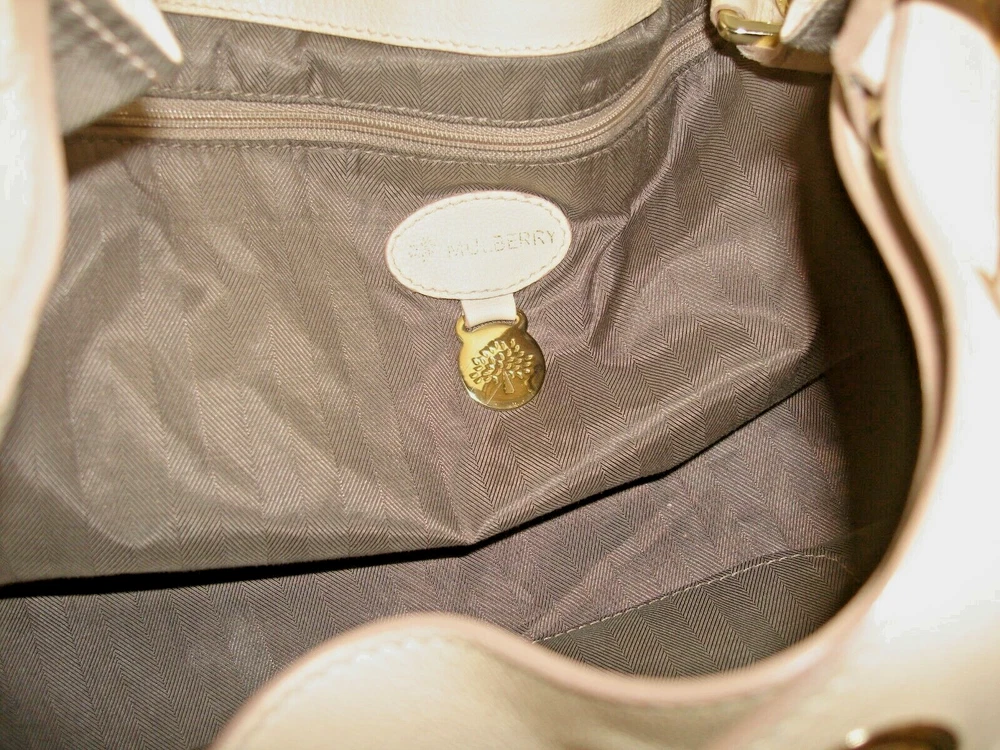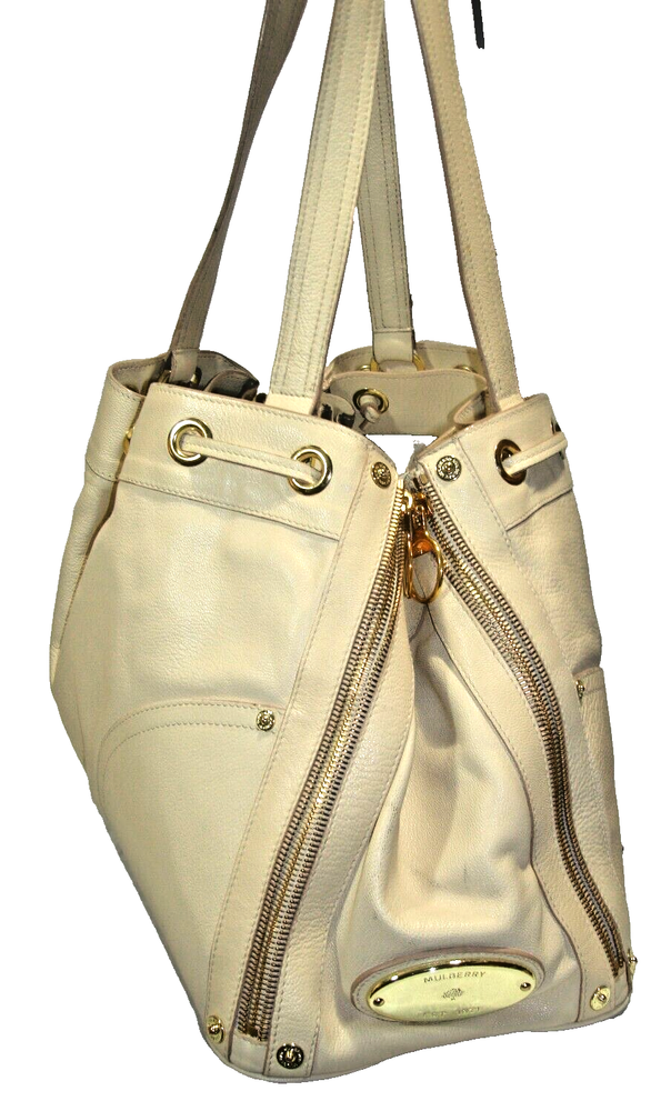 Gorgeous Mulberry Poppy Beige Soft Leather Expandable Satchel Shoulder Bag is Pre-Owned and in Near MINT Used Condition & Comes in a Beautiful New Silky Fabric Protective Dust Bag ! Please see the above ITEM SPECIFICS for all of the measurements, details, and features regarding this bag that is gorgeous and stylish, classy and a real catch -- so DON'T MISS IT!!! Please note all photos are part of this bag's description so look carefully! Please also note that color will vary from Actual to Photograph and from Computer to Computer. And lastly, please note that bag size and condition are subjective and labeled according to my opinion. Please note that colors will appear lighter than actual due to camera flash. Please message me if you have any questions or concerns.