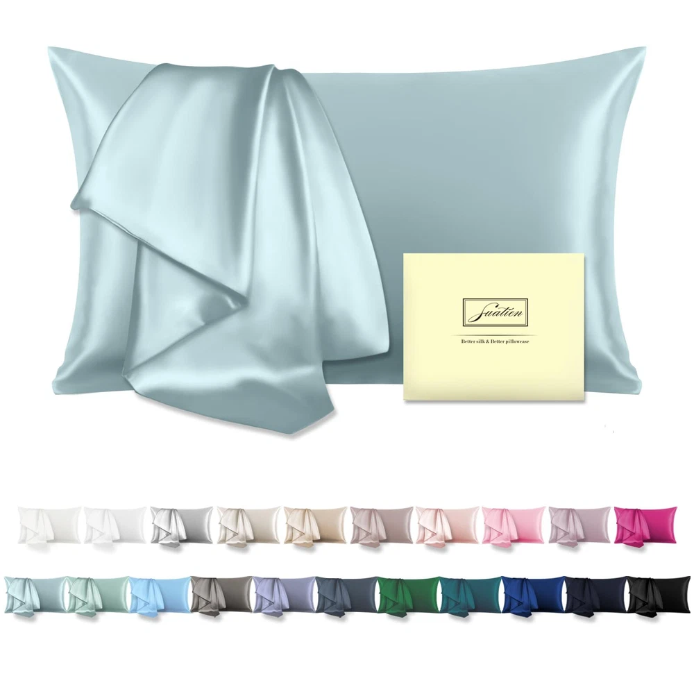 Mulberry Silk Pillowcase for Hair and Skin Standard Size 20"X 26" with Hidden Zipper Soft Breathable Smooth Cooling Pillow Covers for Sleeping(Haze Blue,1Pcs) 【Silk Pillowcase】Our pillow cases are made of Silk, with rich elastic touch, extremely soft appearance, not easy to wrinkle, strong and durable, not easy to be damaged by repeated use, not easy to stain, simple in appearance, easy to match, and improve the happiness of life. 【Smooth and Soft Silk Pillowcase】The surface of the Silk Pillowcase is smooth and shiny, reducing friction on beautiful curly hairstyles and the face. The pillow covers does not absorb any moisture after styling for one night, keeping the hair and skin smooth and shiny, without entanglement. 【Cool Silk Pillowcase】It can be applied all year round. It has a cool body feel, keeps a comfortable body temperature in hot weather, cools the body, and perfectly enjoys the moment of sleep. The cool Silk Pillowcase does not absorb moisture. 【Firm & Easy to Clean】Put the silk pillowcase into a net-like laundry bag and add it to a neutral washing machine. It can be machine-washed or hand-washed, but it is not easy to twist it too dry. Let the pillowcase keep a certain amount of moisture and dry it in the shade to avoid wrinkles. 【Best Gift Choice】Gorgeous and luxurious outer silk pillowcase packaging. Everyone needs a pillowcase for one-third of the time every day,a suitable pillowcase can make your sleep more comfortable.Not only silk pillow cases for women, our pillow cases are also suitable for men, the elderly, and children. We recommend buying two or more, because these Silk Pillow Cases can be the luxurious present for Birthdays, Valentine's Day, Christmas, Thanksgiving gifts. Do you often wake up with creases on your face? Tired of waking up in the morning with a frizzy birds nest on your head?Containing natural proteins, silk can minimize split ends, frizz, and dryness.Reducing friction on beautiful curly hairstyles and the face. keeping the hair and skin smooth and shiny, without entanglement.We recommend buying 2 Pack or more, because these Silk Pillow Cases For Women can be the luxurious present for Birthdays, Valentine's Day, Christmas, Thanksgiving gifts. Shipping We offer FREE shipping on all orders! We ship within Three business days of payment, usually sooner. We use a selection of shipping services such as UPS, FedEx, USPS etc. We only ship to the lower 48 states, no APO/FPO addresses or PO Boxes allowed. Local pickups and combined shipping options are not provided at this time. Return You can return a product for up to 30 days from the date you purchased it. Any product you return must be in the same condition you received it and in the original packaging. Please keep the receipt. Payment We accept payment by any of the following methods: PayPal Please pay as soon as possible after winning an auction, as that will allow us to post your item to you sooner! Feedback Customer satisfaction is very important to us. If you have any problem with your order, please contact us and we will do our best to make you satisfied. Contact Us If you have any queries, please contact us via ebay. We usually respond within 24 hours on weekdays. Please visit our eBay store to check out other items for sale! Thank you for shopping at our store.