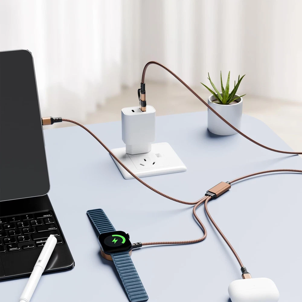Multi 3 in 2 Charging Cable for Apple Watch Charger, Travel for iPhone Charger U Features: 【3 in 2 Travel Charger】This versatile charging solution offers 6 ways to power up your devices: USB C/A to Watch charger, USB C/A for Phone, and USB C/A to Type C Cable. It supports simultaneous charging of up to 3 devices with a USB C/A adapter (not included). Compatible with iWatch ultra/SE 1/2 series 9/8/7/6/5/4/3/2/1,the Compatible with iPhone14/13/12/Pro/Max/iPad,USB C compatible with iPhone 15/15 Pro/15 Plus/15 Pro Max,Samsung Galaxy S23/ S23+/ S23 Ultra/S22/ S21/ S20/ S20+ other android phones. 【Multi Charging Cord Fast Charging】The Type C to Phone cable supports fast charging up to 2.22A Max, delivering efficient power to your devices. Charge your Phone from 0% to 45% within 35 minutes, and your Watch up to 50% within 45 minutes. Recommended 20W USB-C Power Adapter (not included). 【Travel Friendly & Convenient Length】This 6-foot 3-in-2 charging cable features Velcro and a storage pouch for fast charging and convenient storage, making it perfect for use on the go. Whether you're traveling, at home or in the office, you can conveniently charge your devices anytime, anywhere. 【Professional materials & and durability】This charger is made of durable nylon braided wire and equipped with an aluminum shell for durability. Lab-tested to withstand 40,000 bends, it lasts longer than standard cables. The watch's charging head has been upgraded to be more stable, so the watch is less likely to fall off and interrupt charging. 【What You Get】3 in 2 Travel Charging *1 & Storage bag *1, Worry-free 24-month warranty and 24/7 customer service. Features: 【3 in 2 Travel Charger】This versatile charging solution offers 6 ways to power up your devices: USB C/A to Watch charger, USB C/A for Phone, and USB C/A to Type C Cable. It supports simultaneous charging of up to 3 devices with a USB C/A adapter (not included). Compatible with iWatch ultra/SE 1/2 series 9/8/7/6/5/4/3/2/1,the Compatible with iPhone14/13/12/Pro/Max/iPad,USB C compatible with iPhone 15/15 Pro/15 Plus/15 Pro Max,Samsung Galaxy S23/ S23+/ S23 Ultra/S22/ S21/ S20/ S20+ other android phones. 【Multi Charging Cord Fast Charging】The Type C to Phone cable supports fast charging up to 2.22A Max, delivering efficient power to your devices. Charge your Phone from 0% to 45% within 35 minutes, and your Watch up to 50% within 45 minutes. Recommended 20W USB-C Power Adapter (not included). 【Travel Friendly & Convenient Length】This 6-foot 3-in-2 charging cable features Velcro and a storage pouch for fast charging and convenient storage, making it perfect for use on the go. Whether you're traveling, at home or in the office, you can conveniently charge your devices anytime, anywhere. 【Professional materials & and durability】This charger is made of durable nylon braided wire and equipped with an aluminum shell for durability. Lab-tested to withstand 40,000 bends, it lasts longer than standard cables. The watch's charging head has been upgraded to be more stable, so the watch is less likely to fall off and interrupt charging. 【What You Get】3 in 2 Travel Charging *1 & Storage bag *1, Worry-free 24-month warranty and 24/7 customer service. eBay integration by