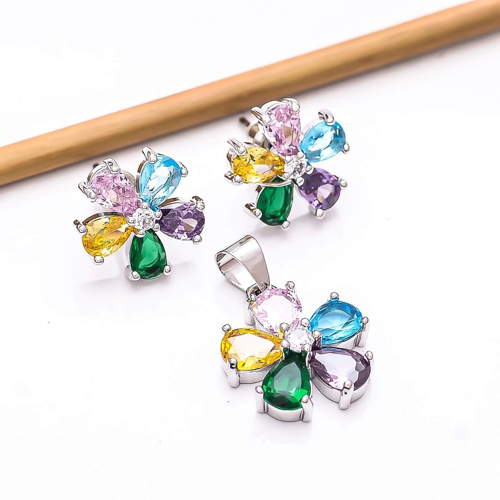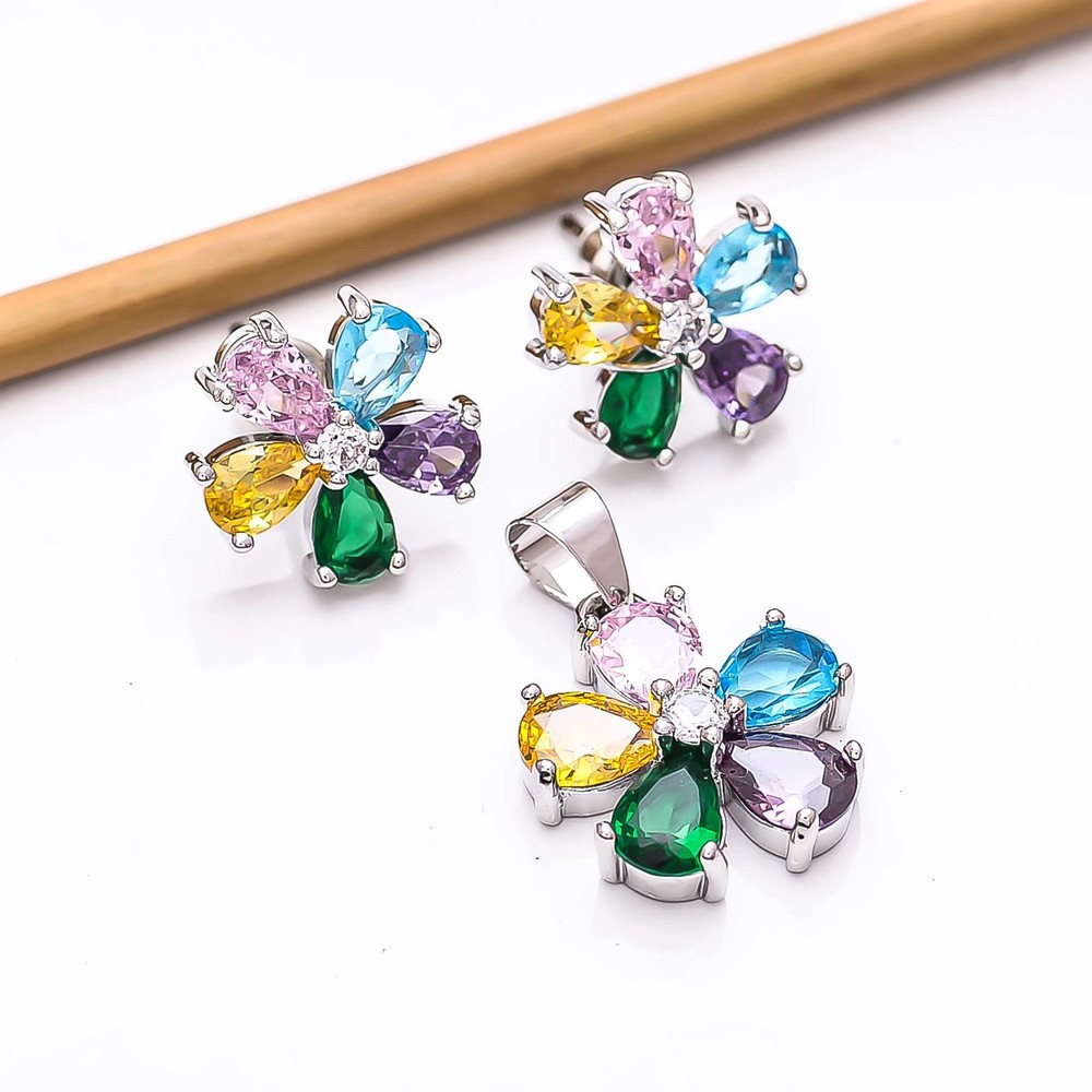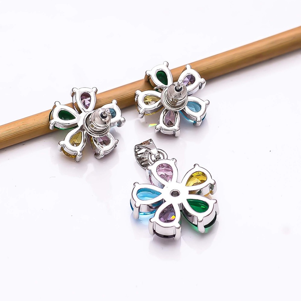 Multi & CZ 925 Silver Handmade Pendant Earring Set PS80512, Christmas Gift