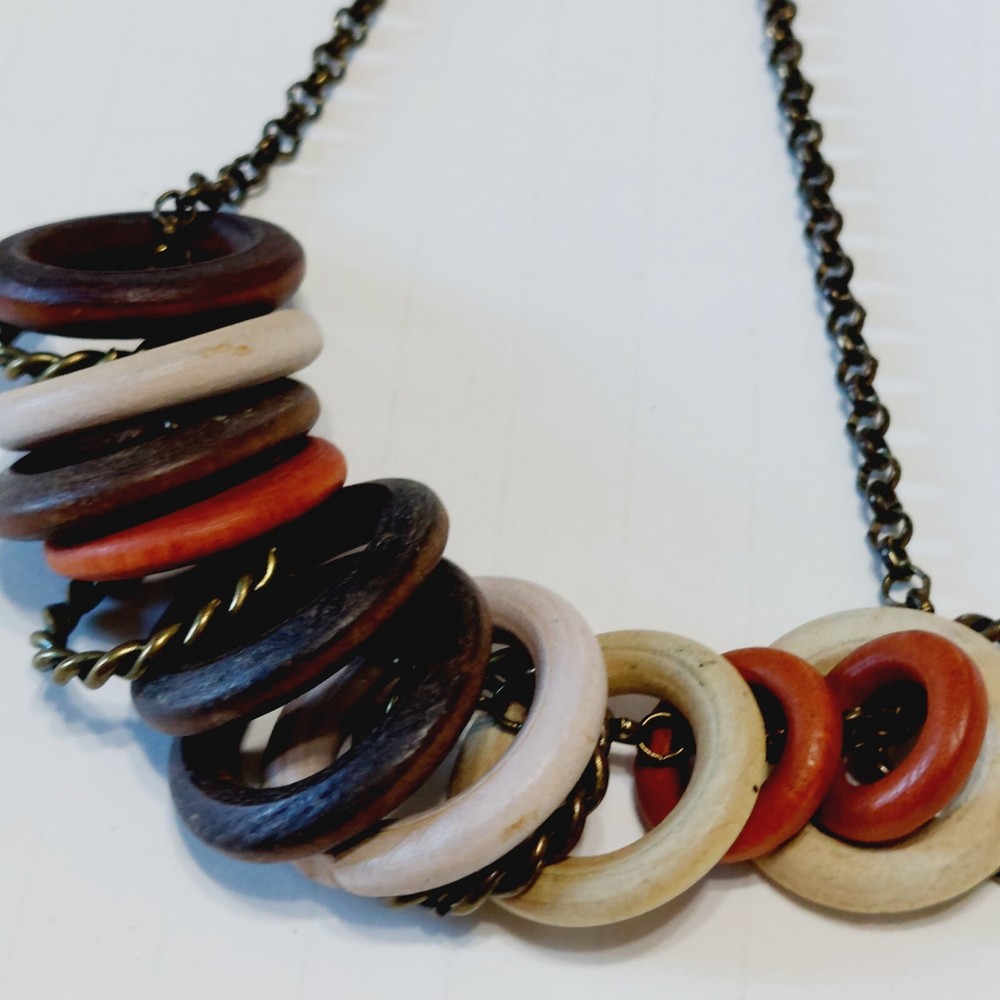 Multi Color Wood Rings Brown Chain Necklace Choker