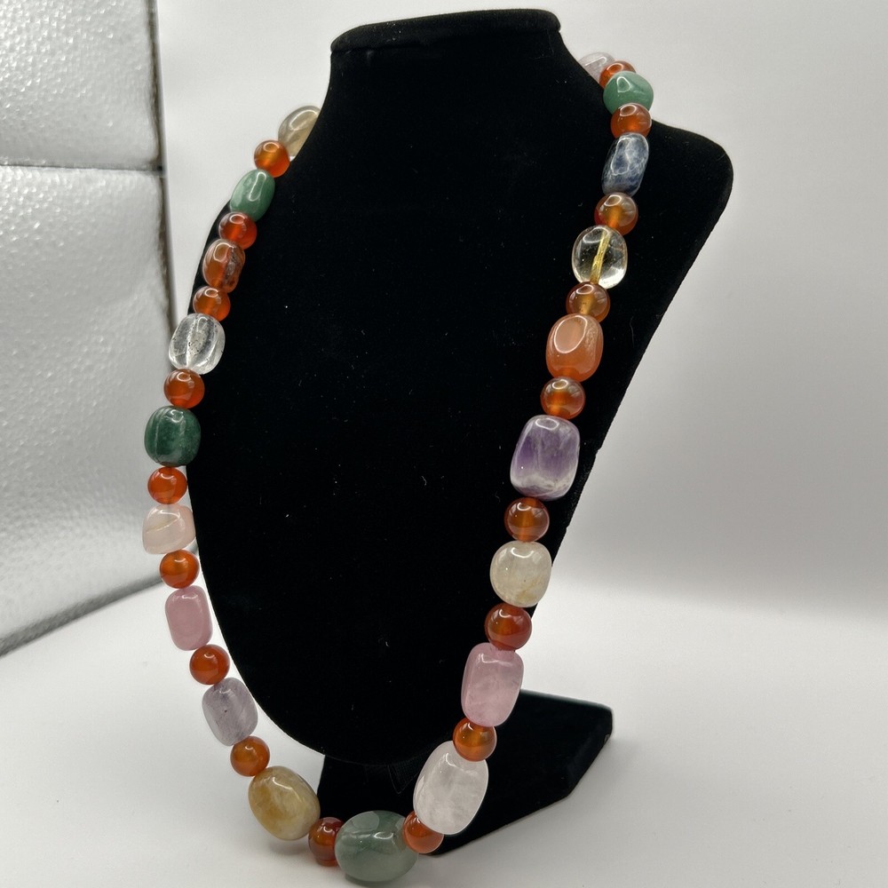 Delve into the vibrant world of earthy elegance with this Multi Colored Stone and Beads Necklace. Crafted with an eye for contrasting beauty, the necklace features a harmonious blend of multi-colored stones and beads, creating a stunning array of hues that complement any outfit. The round pendant shape adds a touch of sophistication, ensuring that this piece is as versatile as it is striking.The Earth brand is known for its commitment to quality and style, and this necklace is no exception. Designed to cater to those who appreciate beaded jewelry, the necklace's main stone color palette is as diverse as it is chic. The ultimate testament to its allure is in its ability to effortlessly transition from daywear to evening glamour, making it an essential addition to any jewelry collection.
