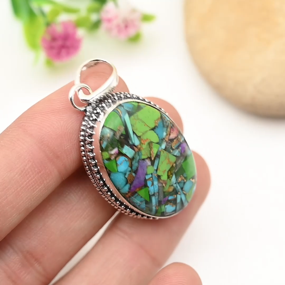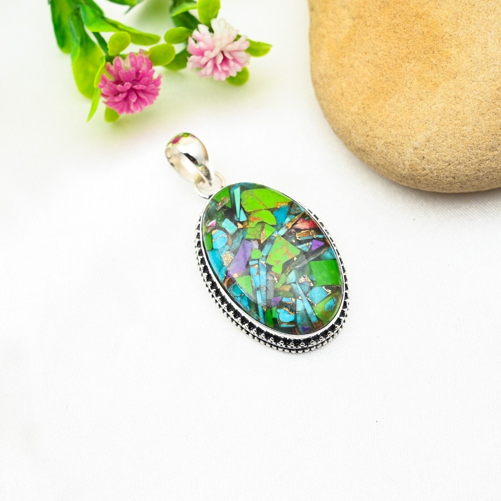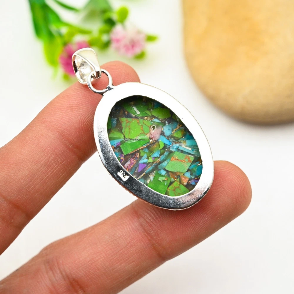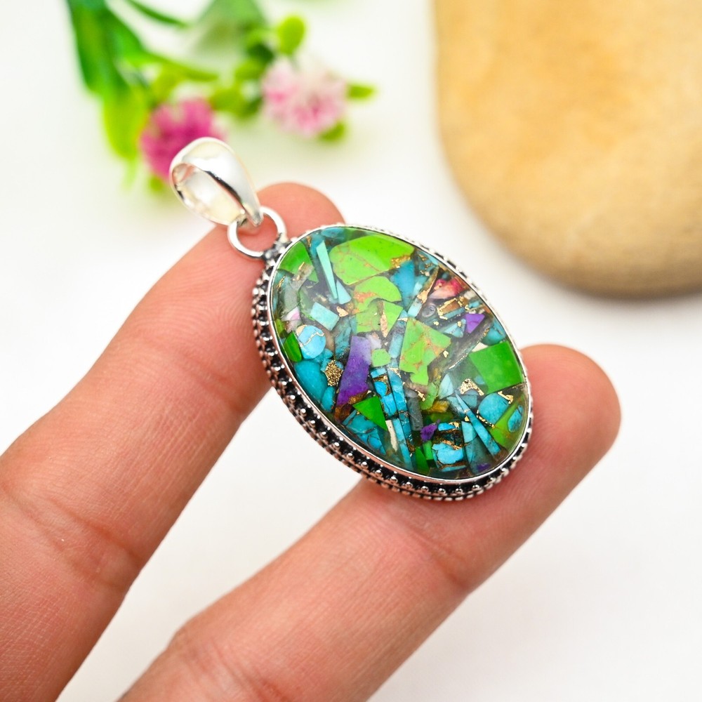 Multi Copper Turquoise Gemstone Pendant 925 Sterling Silver Pendant Jewelry Gift