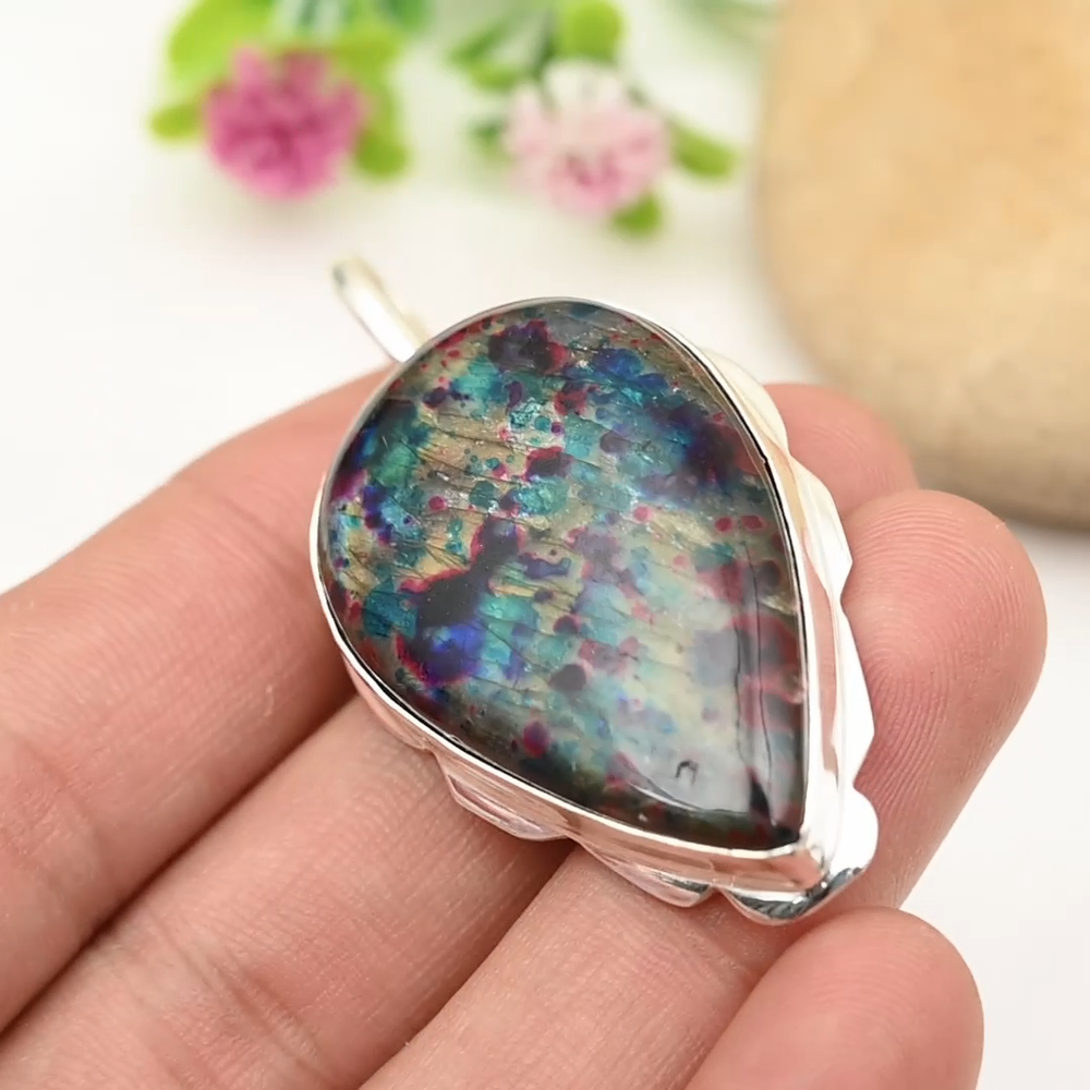 Multi Fire Labradorite Gemstone Pendant 925 Sterling Silver Pendant Jewelry Gift