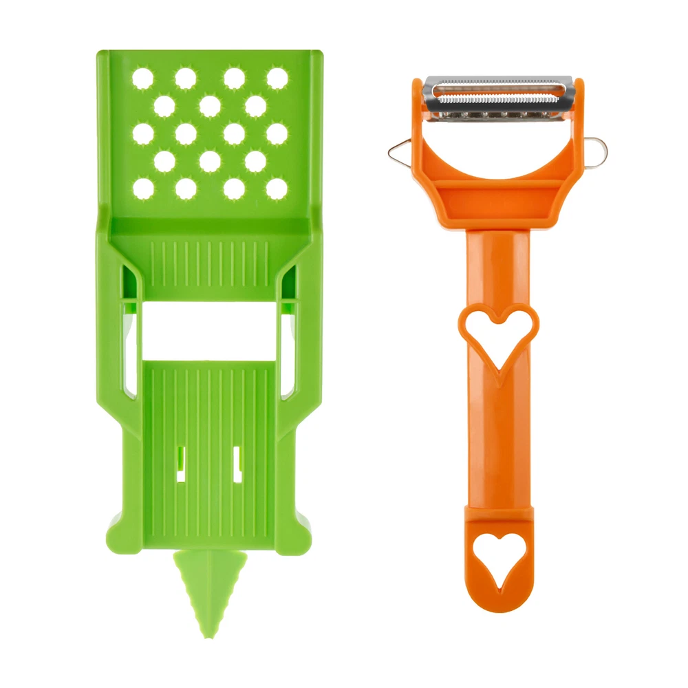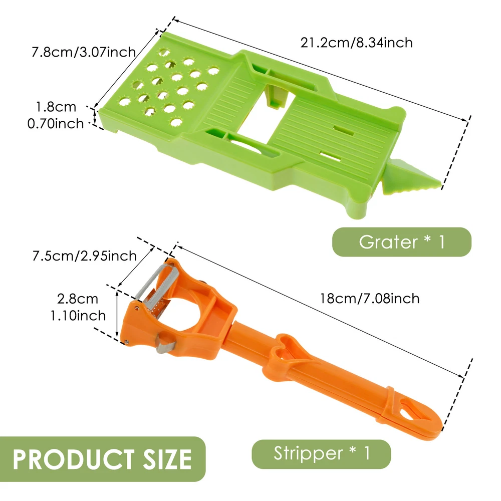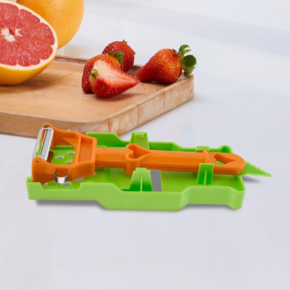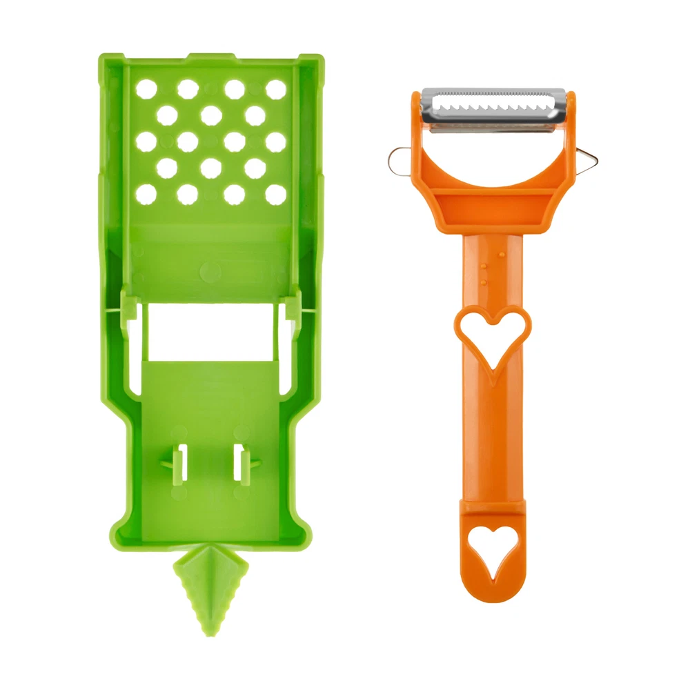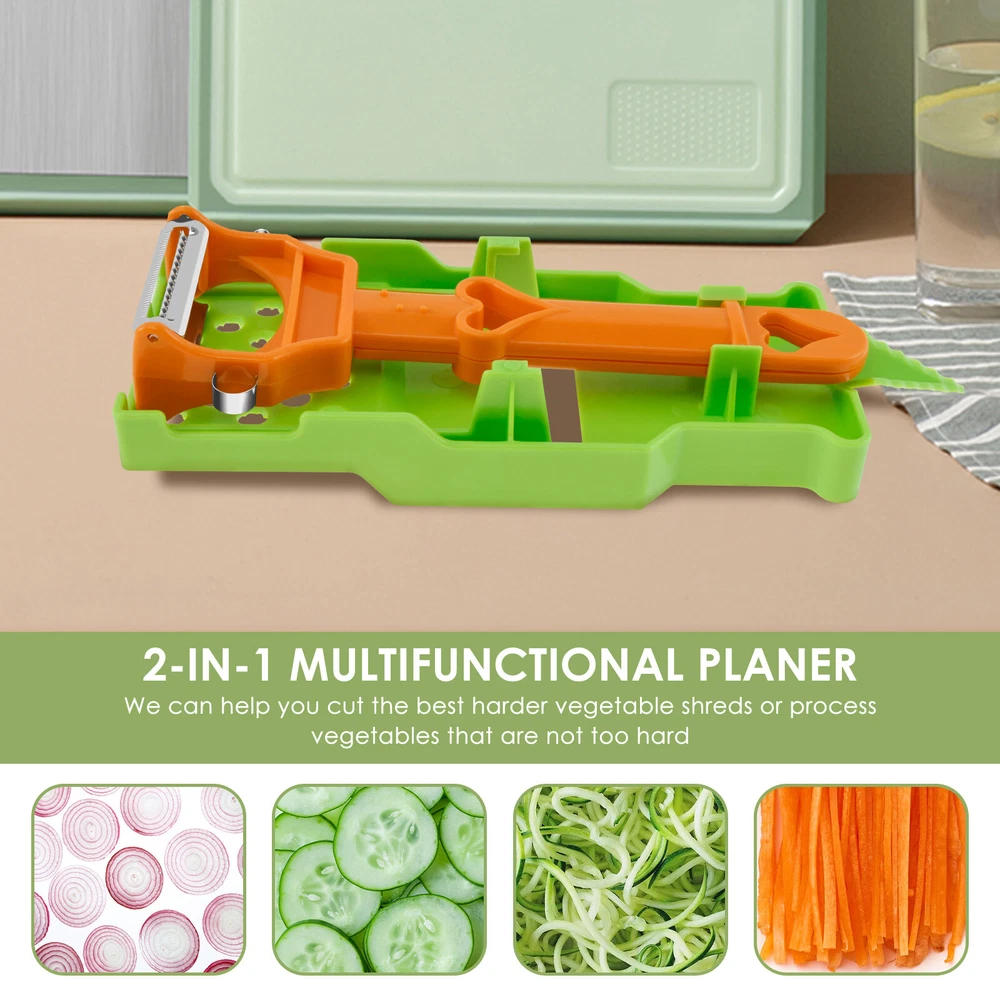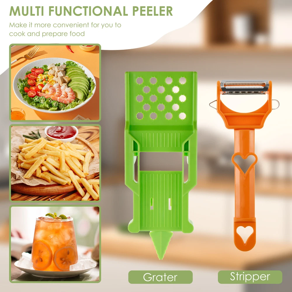 Parts List: 1 x Peeler 1 x Shredder Highlight description: Comfortable and Elegant Design: Manageable size and ergonomic design for comfortable use allows customized cutting style to your liking. Pairs well with making fruit salad bowls; French fries; Margarita drinks, any substance that needs to be peeled Multifunctional Peeler: With multiple functions such as slicing and shredding, the multi peeler makes you more convenient when cooking and preparing food. Whether you are cutting fruits or vegetables, it can meet your various needs Easy to Clean: With split design, the multi potato peeler is a compact and removable product. This design makes cleaning a breeze. Simply rinse it with water to finish it, saving your time and energy Saving Time: Designed with two way blade, you can slice or grind back and forth at the same time, helping you process ingredients faster and more accurately than using traditional methods, assisting you to achieve efficient kitchen work Adaptable: The multifunctional peeler can help you cut the best julienne strips of tougher vegetables, such as carrots or radishes. Or it can also process less hard vegetables, such as cucumbers Detailed description: Description: Our multi peeler has a manageable size and an ergonomic design that is comfortable to use. It has a variety of functions such as slicing and shredding, providing practicality and convenience in your daily cooking. It is compact and removable, making cleaning a breeze. It is a must have kitchen tool to assist you in achieving efficient kitchen work. Key Feature: Gift Idea: Our multifunctional peeler has a variety of functions such as slicing and shredding. Whether you are cutting fruits or vegetables, it can meet your various needs. This is a very practical and reliable kitchen tool, ideal as a gift for someone who loves to cook. Specification: Product Name: Multi Peeler Size: Peeler: 18x7.5x2.8cm/7.08x2.95x1.1inch Shredder: 21.2x7.8x1.8cm/8.34x 3.07x0.7inch Material: Plastic Color: Orange+Green Note: 1.There may be slight differences between the picture and the actual color of the commodity. We will try our best to show you the exact color. 2.Please allow slight dimension difference due to manual measurement.