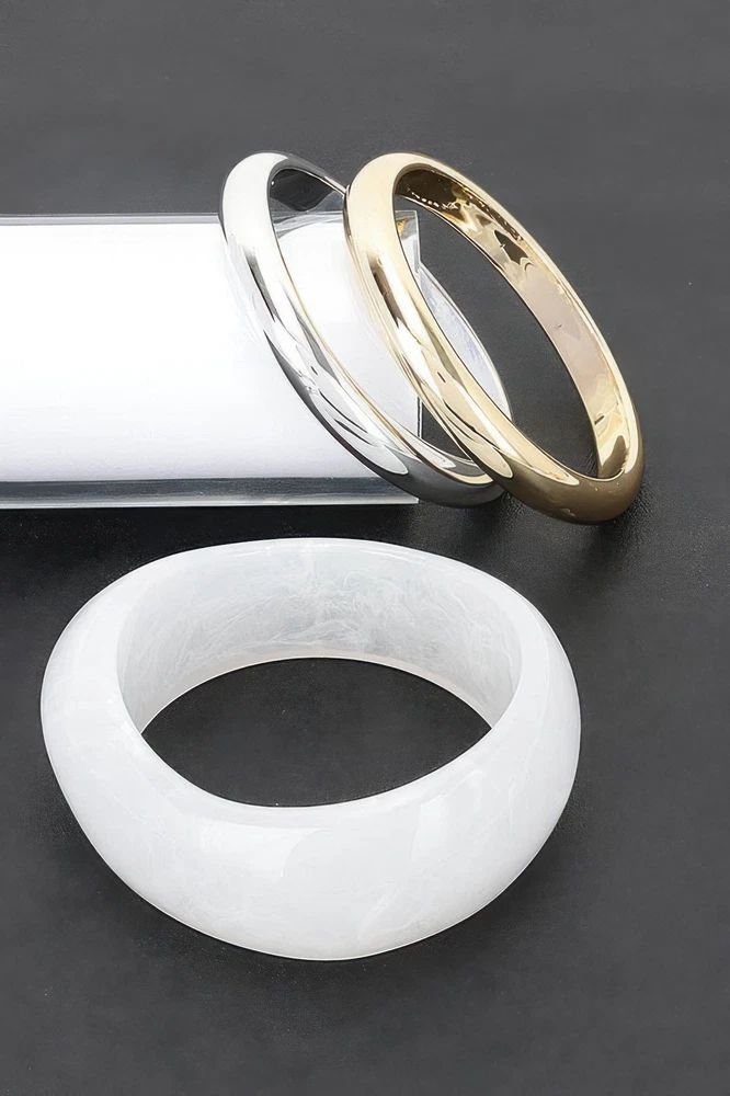 Add a pop of color to your accessory collection with the Multi Resin and CCB Bangle Bracelet. This set of three vibrant bracelets is crafted from high-quality resin and CCB, making it the perfect addition to any wardrobe. Whether worn alone or stacked together, these bangles will instantly brighten up your look with their bold, multicolor design. Key Features: Fabric: High-quality resin and CCB (Copper Coated Brass) materials Fit: Standard size approximately 3.5 x 3.5 inches Color Options: Multicolor Sizes: One size fits most Design: A set of three bangles designed for versatile wear, offering a fun and colorful touch to any outfit Versatile Styling: Perfect for layering or wearing solo, these bangles add a stylish edge to both casual and dressy looks Product Details: Comfortable All-Day Wear: These lightweight bangles are designed for comfort, allowing you to wear them all day without any hassle. Quality Craftsmanship: Made with durable materials, these bangles are built to maintain their color and finish over time. Why Choose the Multi Resin and CCB Bangle Bracelet The Multi Resin and CCB Bangle Bracelet set stands out with its vibrant colors and unique combination of materials. Its playful yet stylish design makes it a perfect statement piece, whether worn individually or stacked. Add this fun and versatile accessory to your collection to elevate your style. Ideal Occasions: Great for everyday wear, festivals, casual outings, or even as a standout piece for more formal events. Its bright colors make it a go-to accessory for adding personality and flair to any look. Customer Reviews: "Love these bangles! They're so fun and colorful, and they pair well with everything!" Lily M. "Perfect for stacking, and the colors are even more vibrant in person. Highly recommend!" Jake T. "A beautiful set of bangles that can be worn every day. They're lightweight and comfortable." Ava L. Size Guide: For accurate sizing guidance, please review our size chart available on the website. Shipping and Returns: Fast Shipping: We offer speedy delivery to your doorstep. Hassle-Free Returns: If you're not completely satisfied, our flexible return policy ensures your peace of mind. Add a splash of color to your jewelry collection with the Multi Resin and CCB Bangle Bracelet set. Get yours today and showcase your unique style! Multi Resin And Ccb Bangle Bracelet