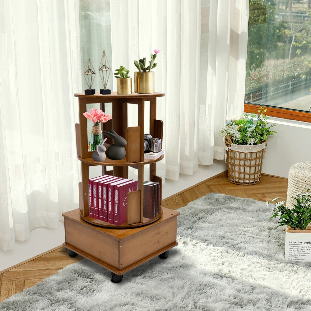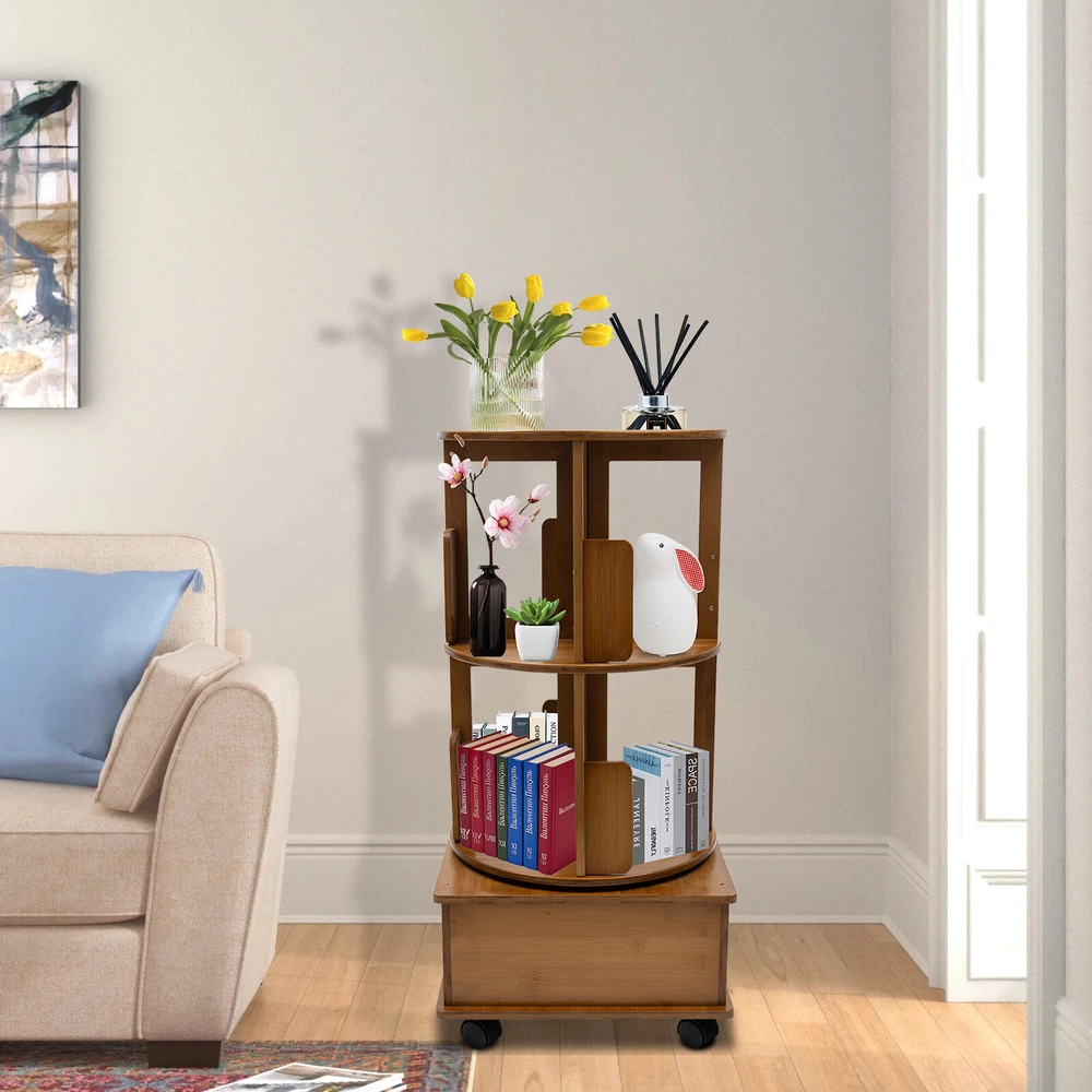 Specification Material: Bamboo Process: Painting Color: Tea Color Shape: Round Assembly Required: Yes Mount Type: Floor Standing Number of Tiers: 2 Number of Compartments: 8 Rotation: 360° Each Tier Bearing Capacity: 15kg/33.07 lbs Tier Height: 27cm/10.6in Base Height: 15cm/5.9in Top Diameter: 40cm/15.7in Overall Size(L*W*H): 41*41*81cm/16.1*16.1*31.9in Package Included 1 * Rotating End Table 1 Pair * Gloves All Accessories for Installation Multi Storage Table, Side Table with Rolling Wheels, Removable Swivel Bookcase Description Are you still worried about having too many books and too much clutter, with nowhere to put them? Multi-layer rotatab le rotating end table can be a n easy solution for you. Multi-layer and large-capacity product can be partitioned and planned, so you can say goodbye to a cluttered life. The design with wheels allows you to place it at will, providing you with higher freedom of use. Key Features Sturdy and Durable: It is made of natural bamboo with a painting process, which has a hard texture, wear resistance and durability, clear grain, dense structure, strong elasticity and toughness, but also is environmentally friendly . Handy Access: The fixable universal wheels on the bottom of the product allow you to push it to any safe position. In addition, the 360° rotating turntable provides you with the possibility of accessing items at multiple angles. Space-saving: With its cylindrical structure and vertical design, this product has a small footprint( 16.1*16.1inches ) and can be placed in all corners to create a tidy space. Strong Load-bearing Capacity: High-quality materials, quadrilateral base, and cylindrical stable structure make the product have up to 33 lbs load capacity per tier, providing more stability for your items to be placed. Storage Assistant: Double-layer structure, eight storage compartments and one drawer can provide you with more diversified storage options. The top panel also provides a separate storage space for your various storage needs . Exquisite Appearance: It is designed in a simple yet sophisticated style that complements a variety of interior decorating styles. Both modern minimalist and traditional Chinese styles can be greatly combined with it. At the same time, the bamboo material itself has a natural and warm aesthetic, so you can enjoy the visual pleasure when you use it. Easy to Clean: The smooth surface, simple construction and removable design of the product make it easy to quickly remove dirt and stains from the surface with a damp rag . Good Customer Service: We stand behind all our guests and look forward to assisting you with your purchase. It is our pleasure to answer your confusion and questions. The end of the story between us is not "we sell and you buy". Details Silent Stainless Steel Turntable: The turntable features a stainless stee l turntable an d steel bearings for stability and durability. Thickened Base: The base is designed with a cabinet (16.1*16.1*5.9in) for load-bearing stability, which is not easy to collapse and not easy to dump shaking. Curved Baffle: Semi-closed baffles make items less likely to fall. Rounded Corners: The rounded corners are carefully polished to care for your skin and avoid scratches during use. Application It can be suitable for any space, such as a living room, bedroom, or study office, as well as shopping malls, hotels, product displays, and so on. Specification Material: Bamboo Process: Painting Color: Tea Color Shape: Round Assembly Required: Yes Mount Type: Floor Standing Number of Tiers: 2 Number of Compartments: 8 Rotation: 360° Each Tier Bearing Capacity: 15kg/33.07 lbs Tier Height: 27cm/10.6in Base Height: 15cm/5.9in Top Diameter: 40cm/15.7in Overall Size(L*W*H): 41*41*81cm/16.1*16.1*31.9in Package Included 1 * Rotating End Table 1 Pair * Gloves All Accessories for Installation Notes Please avoid soaking this product in water and exposing it to sunlight. Please allow the slight color difference caused by the shooting light and the 1-3 cm error due to manual measurement, and make sure you do not mind before ordering. Payment Delivery details Terms of sales About us Contact us Payment We accept ebay payment 。 Fees such as import duties, taxes are not included in the item price or shipping costs. These charges are the buyer's responsibility. Delivery details Shipping: 2-9 working days to: USA Terms of sales We maintain high standards of excellence and strive for hundred percent customer satisfaction. Feedback is very important to us. We hope that you contact us immediately before you give neutral or negative feedback, so that we can address your concerns. It is impossible to address issues if we do not know about them! About us Your satis faction is our ultimate goal. We work hard to earn your trust and future business. Our certified technicians have tested each item before shipping. The unit comes with 1 year limited warranty on all manufacturing defects. a) If you receive a defective item, you may return it or ask for a discount. Please contact us within 14 days after you receive the package. b) What you returned must be intact and in its original packaging as re? u. Customer is responsible for shipping costs of the returned item. c) We will cover the cost of shipping back t with the shipping rate indicated in the registration page. We will send you a new unit or refund the full payment you paid. Thank you. Contact us Business Hour Business Hour: Monday To Friday: 8:30 AM to 5:00 PM (Beijing China time) Due to time zones, our reply to your questions may not be immediately. But within above working time, we will reply your email within 24 hours. If it's non-workdays, please kindly be patient and wait till Monday. Please contact us with ebay message. Please feel free to contact us if you have any questions. Monday To Friday: 8:30 AM to 5:00 PM (Beijing China time) Due to time zones, our reply to your questions may not be immediately. But within above working time, we will r