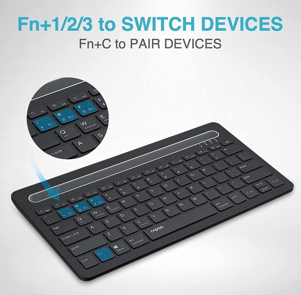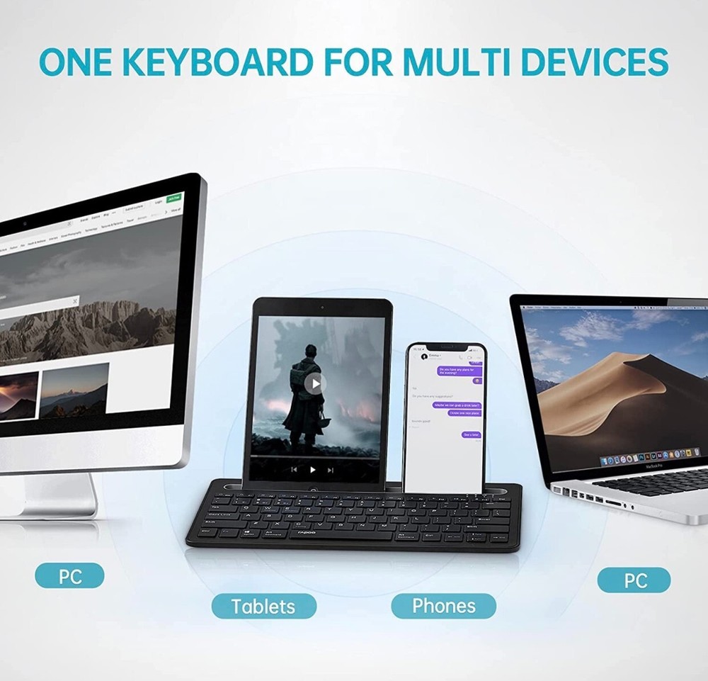 -Brand New -Never Used -Questions: Feel free to ask any Questions - BOX: Never Opened - DESCRIPTION: • Bluetooth 3.0 .0 Wireless 2.4G technology wireless keyboard supports 3 devices, two devices by Bluetooth and the third through 2.4GHz USB dongle. With one keyboard, you can switch devide easily. Please note you cannot control three devices at the same time. Suit for Tablet, Cellphone, PC, Smart TV, Compatible with Windows 7/8/10/XP Vista Linux Mac. The keyboard comes with an integrated card cradle holds your phone or tablet at just the right angle about 110° for you to read while you type. It supports a 9.7-inch iPad horizontally placed. Bluetooth connection technology provides stable signal transmission, three devices can quickly switch between devices through the FN+1/2/3 button. Compact and light, easy to carry, fit for travel or business trip. Multimedia function keys can be quickly switched through FN+F1~F12. Widely Compatible with Cellphone Tablet PC laptop Desktop with Android Windows iOS and Mac OS system. Works on Apple iPad Air, iPad 4 / 3 / 2, iPad Mini 4, iPhone, Galaxy Tab, Macbook, Surface pro & More. Independent chocolate keycaps and silica particles make the fingers evenly stressed, scissor switch keys construction beneath every key enables nice responsive typing. Built-in 280mAh high-energy lithium battery, fully charged in about 2 hours, last for about 93 hours using. Energy-saving design, automatic turns to sleep mode after 10 minutes. - OFFERS: Reasonable offers are considered, LOWBALLERS, Best price and Lowest askers will be ignored -Multi-Device Bluetooth Keyboard, Rechargeable Noiseless Portable Wireless Keyboard Connect to 3 Devices for Tablet Cellphone PC Smart TV, Compatible with Windows 7/8/10/XP Vista Linux Mac