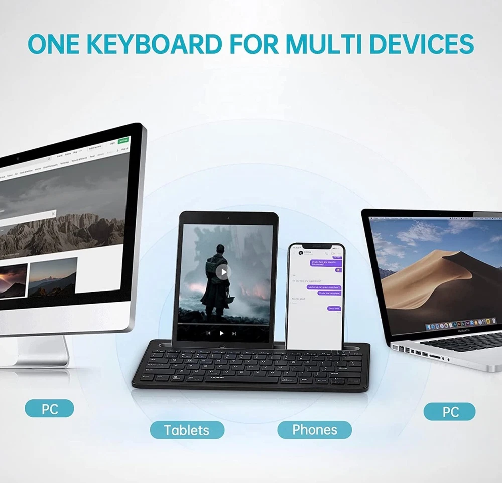 Multi-Device Bluetooth Keyboard,Rechargeable Noiseless Portable WirelessKeyboard