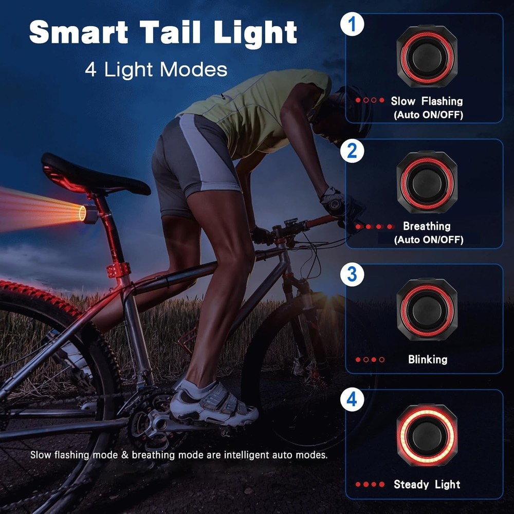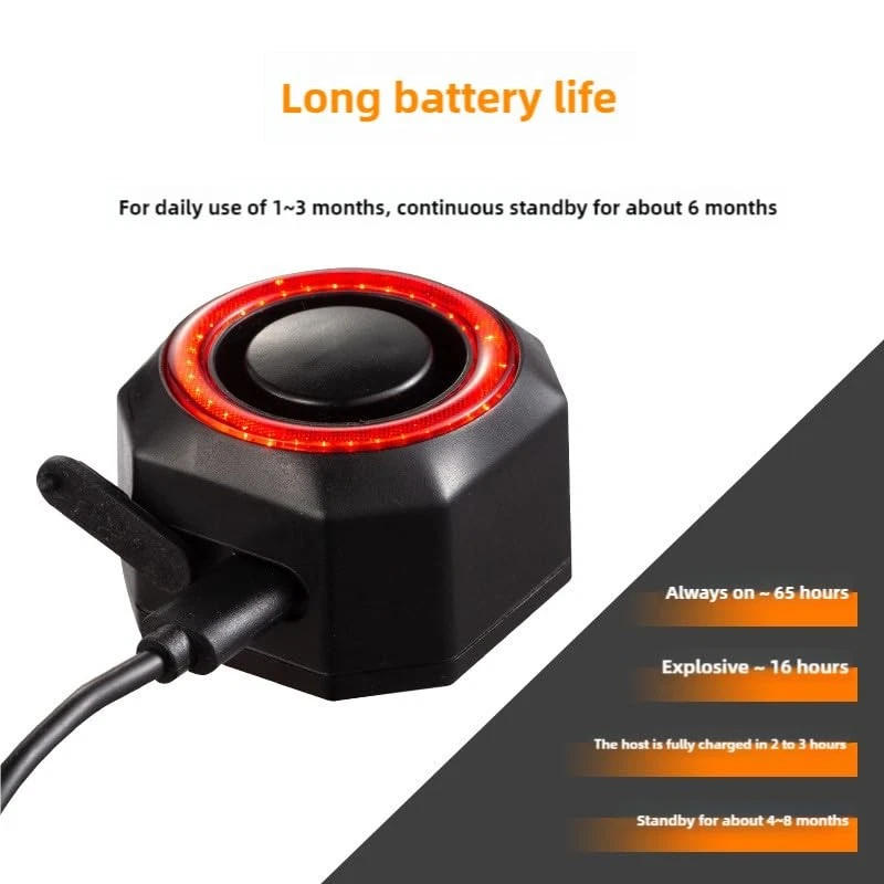 "Bike Alarm Wireless Vibration Motion Sensor – Protect Your Bike with Peace of Mind! Keep your bike safe from theft with our Bike Alarm Wireless Vibration Motion Sensor. This compact, easy-to-use alarm is designed to deter thieves and alert you instantly to any tampering, giving you the confidence to leave your bike unattended. Key Features: ✅ Loud 113 dB Alarm The powerful alarm sound is loud enough to scare off thieves and alert nearby people. Perfect for use in busy streets, parking lots, or garages. ✅ Sensitive Vibration Sensor Detects even the slightest movement or tampering, triggering the alarm instantly. Adjustable sensitivity levels allow you to customize the alarm’s response. ✅ Wireless & Portable Compact and lightweight, this alarm is easy to install and remove. No wires or complicated setup required – simply attach it to your bike and you’re ready to go. ✅ Weatherproof Design Built to withstand rain, snow, and extreme temperatures, this alarm is durable enough for outdoor use in any season. ✅ Easy Installation Comes with adjustable straps or mounting brackets for secure attachment to your bike frame. Fits most bike types, including road bikes, mountain bikes, and e-bikes. ✅ Long Battery Life Powered by a rechargeable battery (included), this alarm offers up to 2 weeks of standby time on a single charge. A USB cable is included for convenient recharging. ✅ Remote Control Operation Arm or disarm the alarm with the included remote control from up to 20 meters away. Perfect for quick access to your bike without triggering the alarm. Why Choose Our Bike Alarm Wireless Vibration Motion Sensor? Theft Deterrent: Protect your bike from theft with a loud, attention-grabbing alarm. Easy to Use: Simple installation and operation make it accessible for everyone. Versatile: Suitable for bikes, motorcycles, scooters, and even outdoor equipment. Affordable: Get premium security features at a budget-friendly price. How to Use: Attach the alarm to your bike frame using the included straps or brackets. Adjust the sensitivity level to suit your needs. Arm the alarm using the remote control when leaving your bike unattended. Disarm the alarm with the remote when you return." 🚲SMART BIKE TAIL LIGHT WITH ALARM - Not only a bike taillight but also a hidden anti theft bike alarm. This bike tail light build in motion sensor and vibration alarm, can help to deter thieves effectively by 110dB loud alarm, provide additional security and give you peace of mind when your vehicles park outdoors. 7 levels adjustable vibration sensitivity from gently touch to push or beat, you can easily adjust the sensitivity as your need 🚲SMART BIKE BRAKE LIGHT - Auto bicycle brake light build in G sensor. Once you braked the rear light will auto highlight for 2s to alert other drivers behind you, effectively avoid rear-end collisions and traffic accidents 🚲ULTRA-BRIGHT BICYCLE REAR LIGHT WITH 4 MODES - 160 lumens super bright and 270 degree extra-wide bike taillights powerful flashes alert motorists at night and during the day, that enhance your visibility and safety. Slow Flashing/Breathing/Fast Blinking/Steady Light/OFF, 4 light modes easily selected by wireless remote 🚲SMART AUTO ON/OFF - No worry the bike rear light auto lights up when you sleep at night. Build in light sensor and motion sensor. On Slow Flashing & Breathing modes, tail light automatically turns off after 30 seconds of inactivity in dark environments, and turns on when motion is detected. In bright environments it automatically turns off to save power, if you need the tail light in day time, you can select Fast Blinking/Steady Light (these 2 modes have NOT smart on/off function) 🚲2 INSTALLATION METHODS - Come with mounting bracket, cable ties for 2 installation methods. Bracket installation suitable for tube installation position. Zip ties installation suitable for irregular mounting objects. Easy to install. An affordable & practical bike accessory 🚲SEARCH FUNCTION & WATERPROOF - Vehicle search function, easy remote to find your vehicles in parking lot, 3 kinds of bells for your choice. This function also can be bike horn function. IP65 waterproof, don’t worry about rainy day