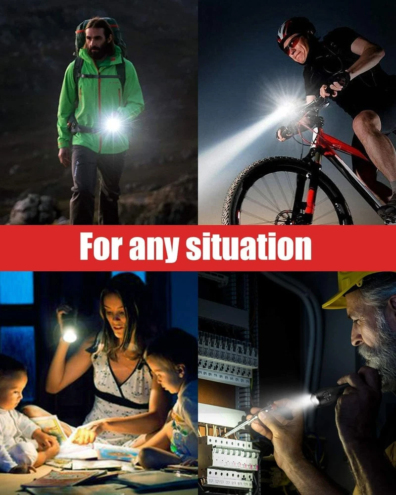 Voltage: 9 volts Item Height: LED Flashlight Battery Description: Alkaline Brightness: 2000 Lumen Personalize: No Type: Flashlight Number of Batteries: 6 Item Package Quantity: 2 Number of Lights: 1-3 Finish Type: Powder Coated Shade Material: Aluminum White Brightness: 2000 Lumens Product Dimensions: 1.4"d X 1.4"w X 5.12"h Shape: Pen Specific Uses: Flashlight Shade Color: Black Lighting Technology: LED Runtime: 50000 Hours Operating Range: 656 feet Item Weight: 5 ounces Water Resistance Level: Waterproof Color: Black Material: Aluminum, aircraft-grade alloy, type 3 hard-anodized coating, anti-abrasive coating Size: 2 Pack Features: Batteries Included, long range, adjustable light modes, high power, adjustable focus, impact resistant, waterproof, dustproof, wear-resistant Included Components: Battery, Case Finish Types: Powder Coated Battery Technology: AAA Battery Cell Composition: Alkaline Operating Time: More Than 10 Hours Brand: Unbranded Light Source Type: Led Item Length: LED Flashlight Light Path Distance: 656 Feet Lumens: 2000 lumens gtin13: Does not apply Mounting Type: Handheld UPC: Does not apply Power Source: Battery Batteries: 6 Aaa Batteries Required. (included) Light Direction: Adjustable