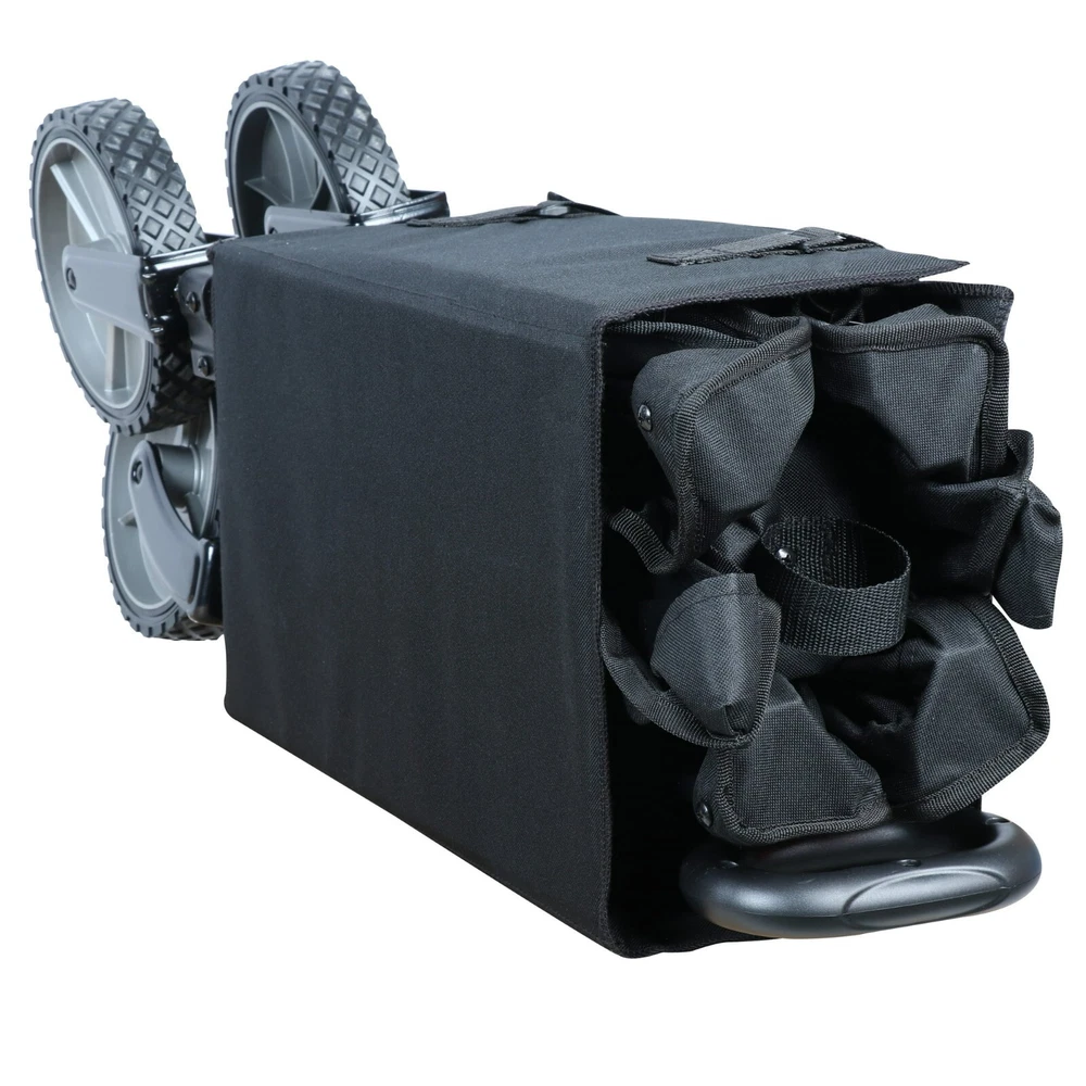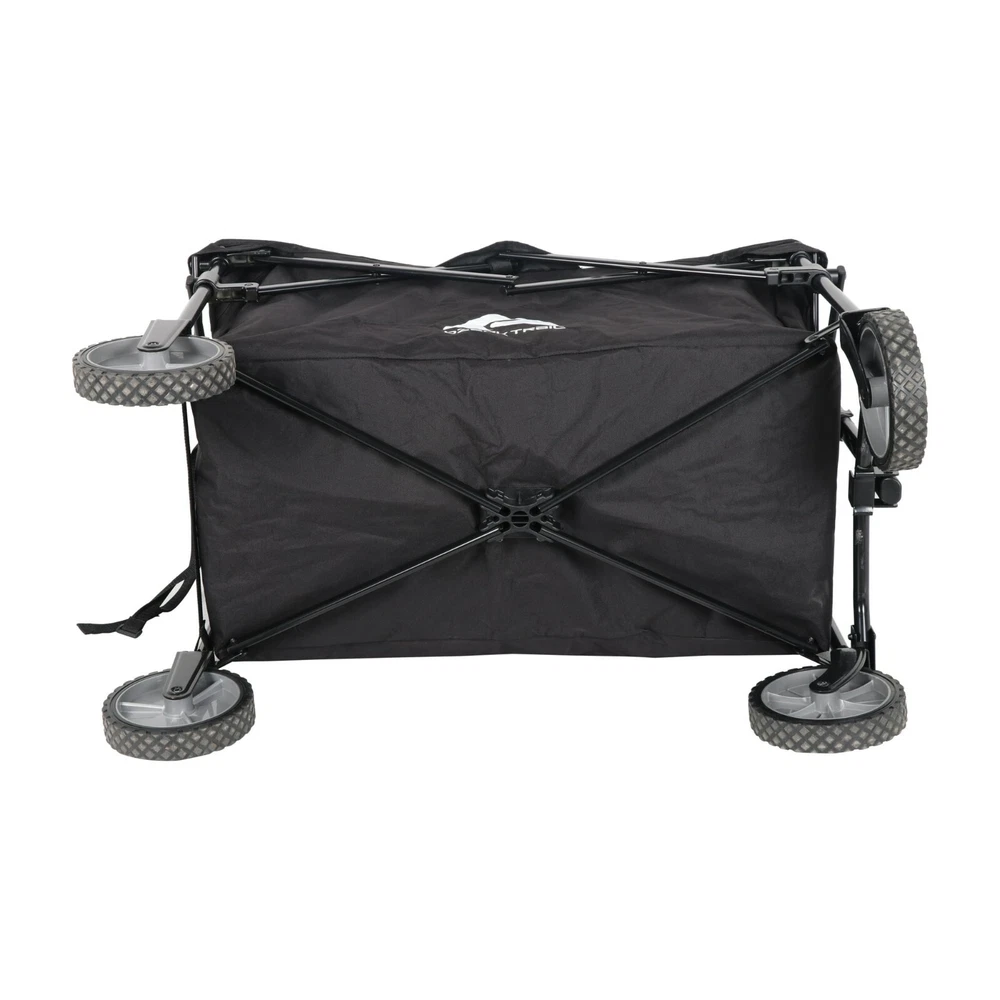 Make hauling all your essentials easier with the Multi-Purpose Large Cart. Designed with a durable frame and a deeper basket than similar products, this cart can carry up to 260 pounds of stuff. And for easier hauling, the telescopic handle can be extended or shortened depending on the user. This cart is also designed with heavy-duty PVC wheels that can move over a variety of terrains. When you need to store the cart, it can be folded into a small size that fits in your trunk or garage. The floor mat is also used to wrap around the cart to ensure it stays folded when not in use. Whether you are camping, going on a picnic, or just hauling stuff around the house, choose the Multi-Purpose Large Cart. It comes in black, and is available for adults and teens. Telescoping handle for easy pulling Floor/storage insert used to wrap around stroller when folded Small size for easy transport in trunk or garage storage Deeper basket provides more storage space Heavy-duty 7-inch PVC wheels for maneuverability over a variety of terrain Load Capacity (pounds): 260 lbs. Product Weight (pounds): 6 lbs. Open Dimensions (inches): 32.7” x 18.7” x 24” Closed Dimensions (inches): 8” x 7.8” x 25.3” Black Large Bucket Ozark Trail For Adults and Teens