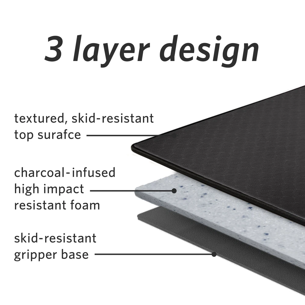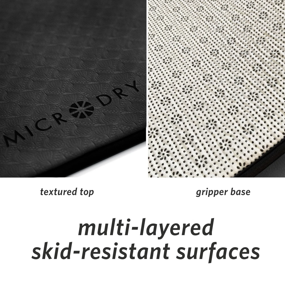3-Layer Protective Comfort - The unique, 3-layered design of these exercise floor mats for home gym offers elevated safety and support. Each exercise pad has a textured, non-skid top surface, a high-impact-resistant foam, and a non-slip gripper base. This sleek workout mat is crafted with careful attention to thickness, ensuring optimal comfort and protection during any type of exercise. It won’t fray or tear easily, thanks to its unique, multilayer design. • Layer 1: Textured, skid-resistant top surface for good traction and grip. • Layer 2: High-impact-resistant foam to ease stress points. Offers customized comfort and rebounds as you move to absorb shock. • Layer 3: Skid-resistant gripper base to keep mat in place. No foul smell here! Our workout mats for home gym are infused with activated charcoal to keep them fresh and free from odor, mold, and mildew. The MICRODRY portable mat is when doing , HIIT, pilates, or ab workouts. With an included mat carrying strap, you can use it in the gym or when exercising at home. On Feb 5, 2025 at 17:38:29 PST, seller added the following information: