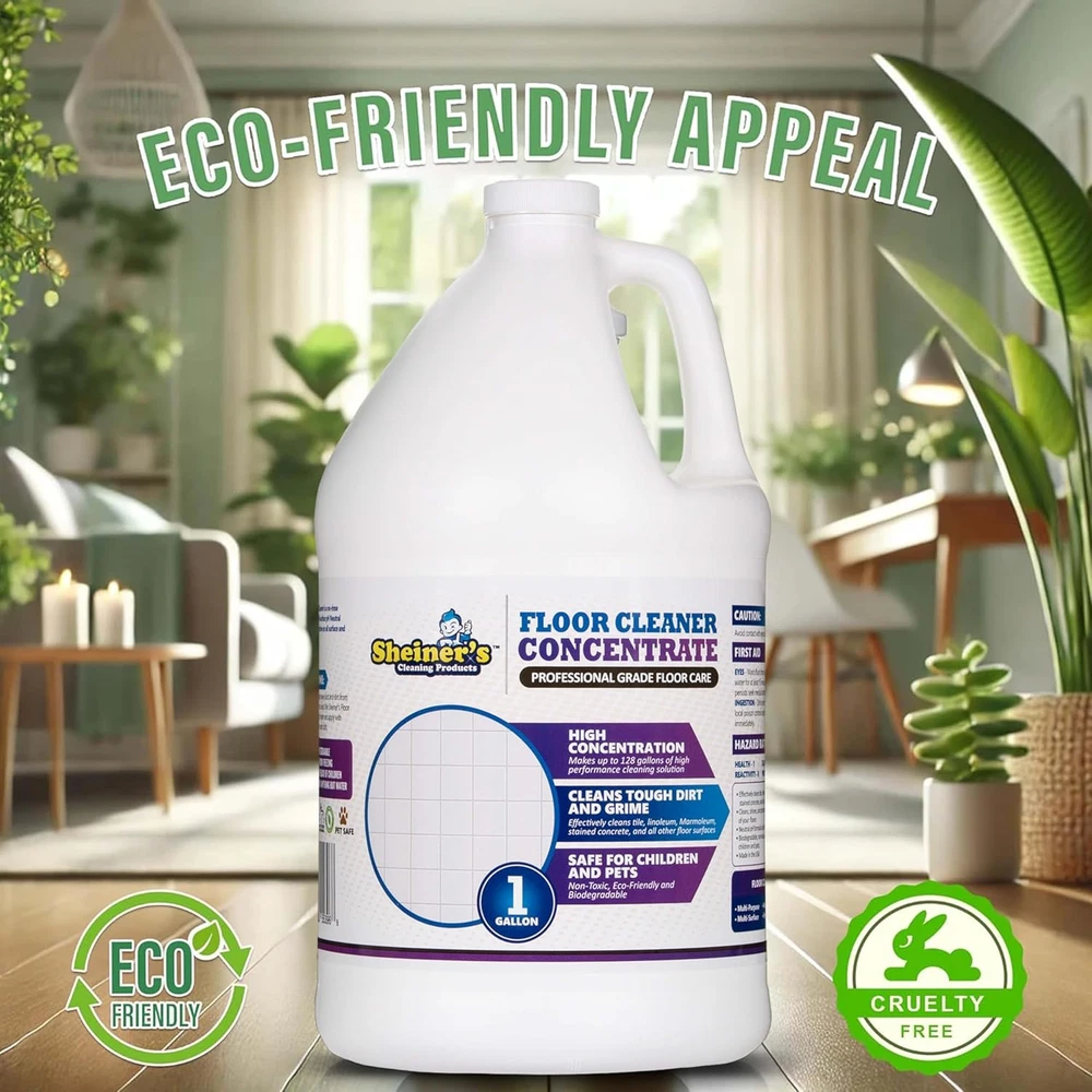 MULTI-SURFACE CLEANING POWER – Ideal for home and commercial use, this cleaner works on a wide range of surfaces. Whether you're maintaining flooring tile, refreshing granite countertops, or polishing vinyl, Sheiners’ formula simplifies every task for home clean results. POWERFUL DEGREASER AND STAIN REMOVER – This professional degreaser cleaner eliminates tough grease, grime, and stains. It’s also an ideal stain remover for bathroom surfaces and a reliable option for spot cleaner carpet needs. CONCENTRATED AND COST-EFFICIENT – Maximize value with this highly concentrated solution. Just one gallon of this floor cleaner concentrate makes up to 128 gallons of cleaning solution, prime choice for regular cleaning tasks and bulk cleaningg supplies orders. SAFE AND NON-TOXIC FORMULATION – Our non-toxic, ph neutral floor cleaner is suitable for maintaining a natural home fragrance environment. It's formulated without harmful and strong ingredients, ensuring a safe for all living spaces. With every use, offering peace of mind while keeping your spaces clean and fresh. EASY-TO-USE CLEANING SOLUTION – Designed for convenience, this cleaner pairs well with kitchen mops for tile floors, wax mops for floors, and other tools. Use it with a floor spray mop cleaner for hassle-free application and a refreshing lavender scent. Product description