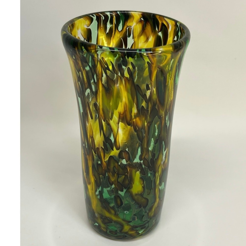 Multicolor Green/Yellow Glass Cup 7 in. DAE Glass original. Artist: David Allen