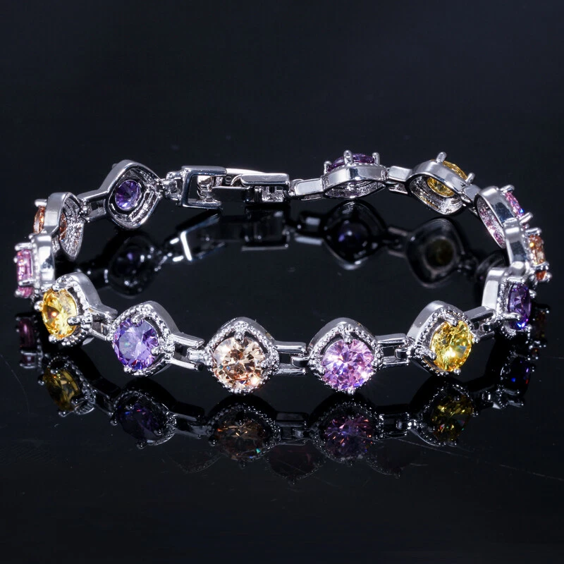 Multicolor Bracelet Cubic Zirconia Sqaure Tennis Link Chain Silver Plated Bangle Specifications: 1. Condition: New 2. Material : Cubic Zirconia 3. Bracelet Length :17.8 cm + 3 cm (Extended Clasp) Features: 1. Cubic Zirconia High Quality Material - Diamond-like Brilliance , Prong Setting and CZ Stone are stable. 2. A Perfect Jewelry Gift for Women , Girls , Mother , Wife , Lover , Fiancee , Friends . 3. Suitable for Various Occasions: Ideal for Wedding, Prom, Pageant, Parties, Homecoming, Black Tie Formal Affairs, Holidays , Birthday , Christmas , Valentine's Day , Anniversary and Special Occasions. Package Includes: 1Pc Bracelet Payment Delivery details Terms of sales About us Contact us Payment 1. We only accept payment by Paypal 2. We request you pay within 5 days of the first auction close. Failure to do so may cause our automated dispute system to file disputes for unpaid items Delivery details We only send items to the registered eBay address.Items will be shipped within 2 business days from the date payment is received (not include public holiday and weekend) . As per eBay regulations, import duties, taxes, and customs charges are the buyer's responsibility. Please check with your country's customs office to determine what these additional costs may be prior to bidding or buying. Terms of sales After-Sale Please contact us to request a return/replace/refund authorization.It will be best if you use ebay message to contact me. 1, Return and replacement request is available only the requests within 30 days after parcel received. 2, Returning the item as the same condition as received. Situation and solution Defectives ---Please contact us and provide a photo of the defective part. After situation confirmed,we will offer you refund/return/replacement according to the situation Not as Described ---Please contact us and provide a photo of the wrong part. After situation confirmed,we will offer you refund/return/replacement according to the situation Not Received ---Please undersatnding shipping on the way was out of our control ,because of the busy shipping season,holidays,bad weather or force majeure etc. It may be delay for days. But if it took too much time and not deliveried, Please message me, I will offer you solution for it. About us Working time: Chinese time(Eastern eight zones):Monday to Friday ,9:00 am to 6:00 pm. We do not work on chinese legal holiday. Message reply: We will reply all messages within 24 hours of business time. Contact us Please contact us via ebay message, it was the best way for both you and us to solve problems. Any questions or anything you need, please feel free to contact us.