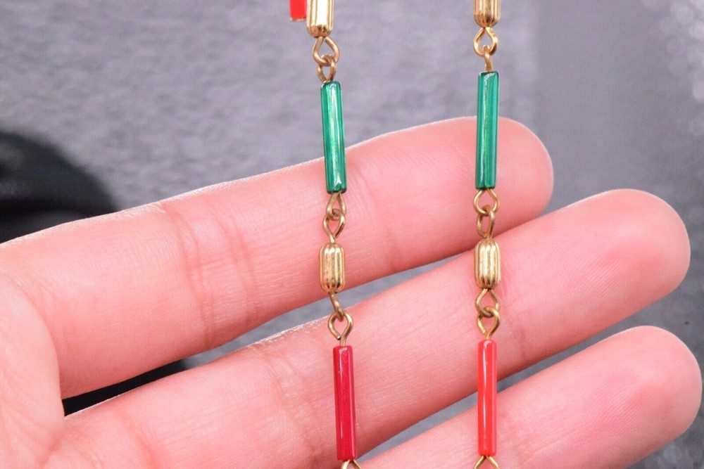 Red Green Yellow & Gold Dainty Chain Choker Necklace Beaded Necklace Women's Jewelry 15" Please view all photos Hook clasp Free Shipping Will Be Send WITHOUT Tracking Info 3.99 Is For USPS 1St Class Mail with Tracking Number Free Shipping Will Be Send WITHOUT Tracking Info 3.99 Is For USPS 1St Class Mail with Tracking Number