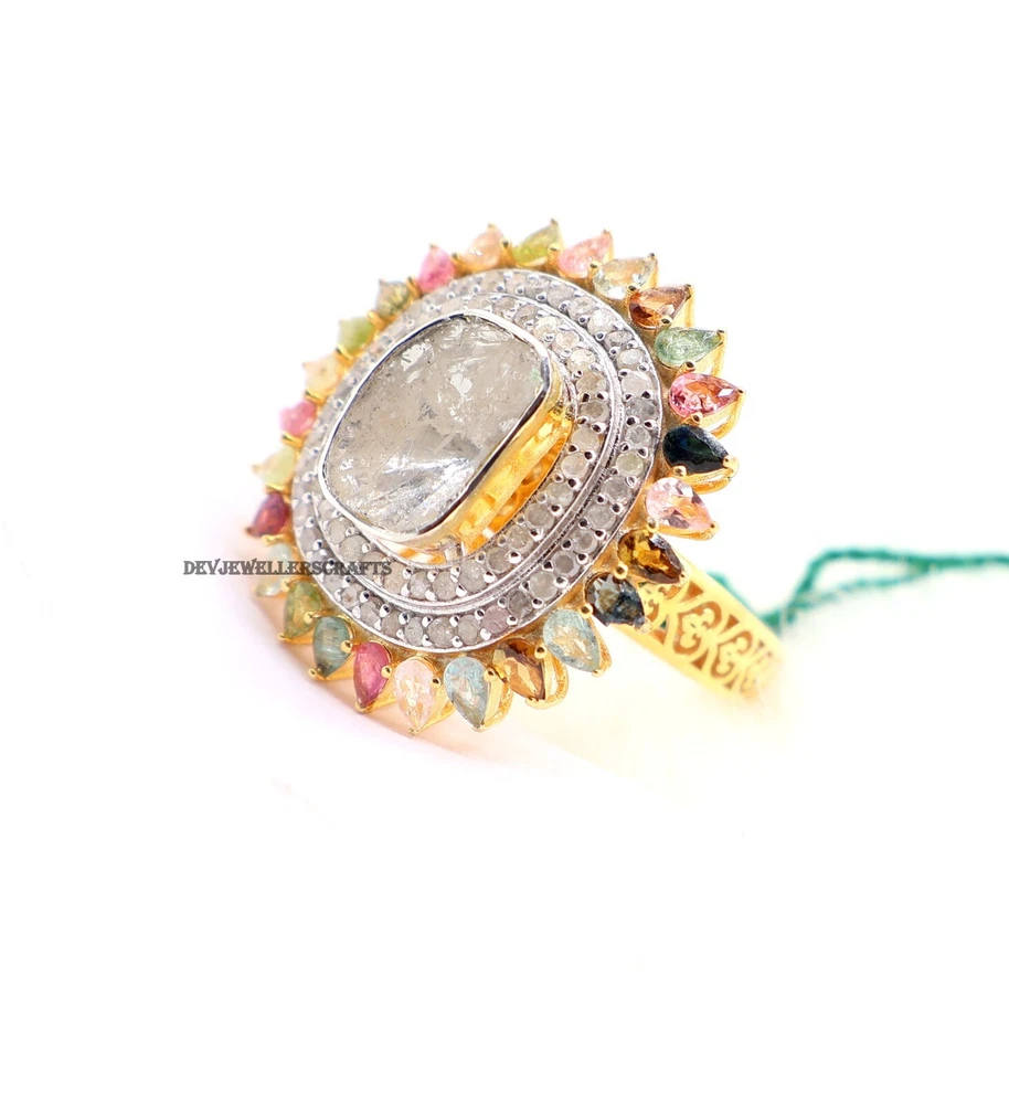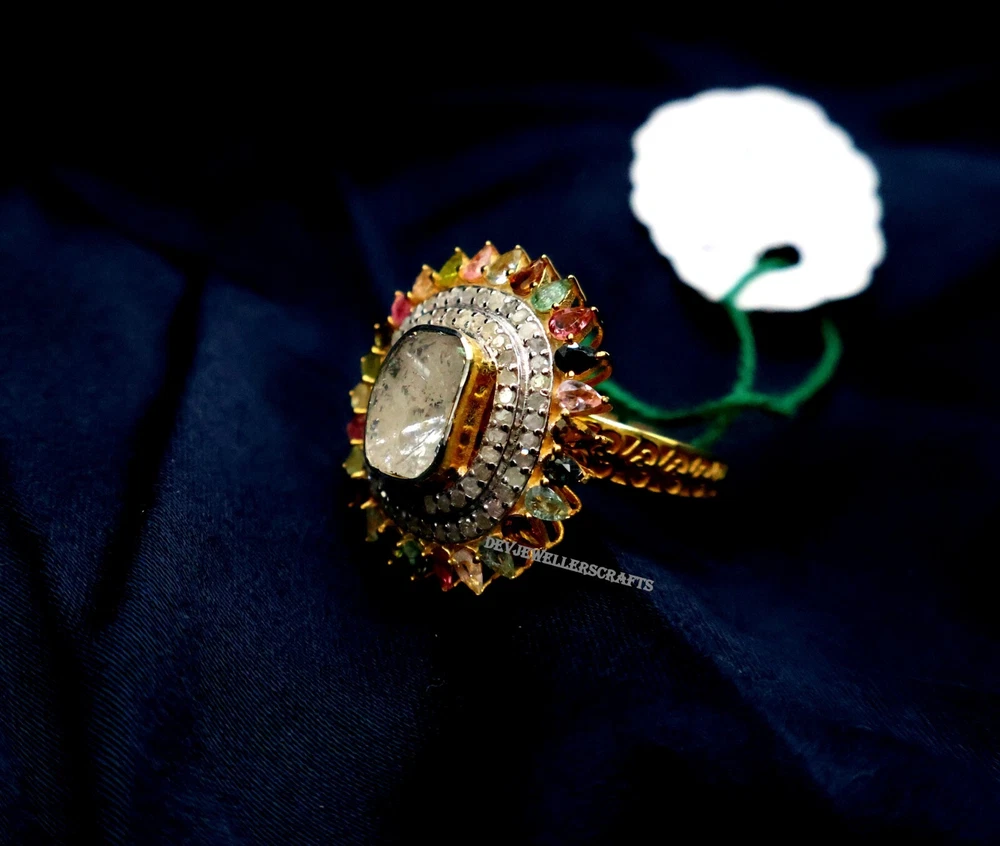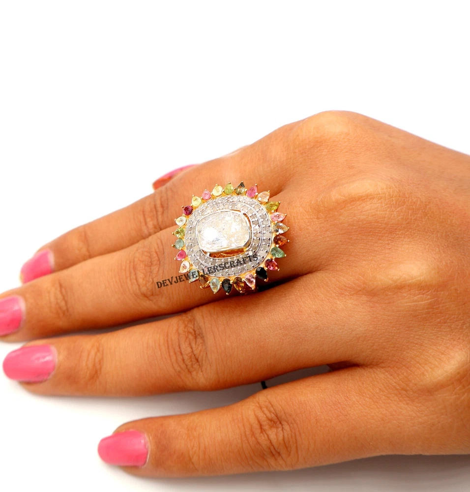 Created with Eselt - eBay Listing Templates Created with Eselt - eBay Listing Templates Our Store Seller Profile Feedback About us Contact Created with Eselt - eBay Listing Templates Multicolor Tourmaline & Pave Diamond 925 Sterling Silver Rose Cut Polki Ring. About Item ! Multicolor Tourmaline & Pave Diamond 925 Sterling Silver Rose Cut Polki Ring. Elevate your engagement with this luxurious gold-plated ring, featuring a stunning rose cut Polki diamond and sparkling pave diamonds with multicolor tourmaline. Crafted in 925 sterling silver, this ring combines traditional elegance with contemporary style. Features: Gemstones: Natural Rose Cut Polki Diamond & Pave Diamonds, Multicolor Tourmaline Metal: 925 Sterling Silver with Gold Plating (Durable and hypoallergenic) Style: Engagement Ring Design: Showcases a beautiful rose cut Polki diamond at the center, surrounded by intricate pave diamonds and Tourmaline for added brilliance, all set in a gold-plated sterling silver band Finish: Gold-plated for a rich, luxurious look Occasion: Ideal for engagements, anniversaries, or as a statement piece in any fine jewelry collection This exquisite ring offers a blend of classic and modern elements, making it a perfect choice for a memorable proposal or a special gift. The gold plating enhances the vintage charm of the Polki diamond and the sparkle of the pave diamonds, creating a truly standout piece. RETURN POLICY : Your satisfaction our priority. returns are available within 30 days of the item's arrival. 100% money back or exchange guarantee on. Shipping : we offer worldwide shipping item will be shipped within 2 day after payment is cleared. the delivery time usually takes 9 To 12 days & depending which country & location. Gemstone Shape : Rose Cut Ring Size : All Size Available Main Stone Color : White\Colorless Made in India Created with Eselt - eBay Listing Templates Created with Eselt - eBay Listing Templates Links Our Store Seller Profile Feedback About us Contact More items Are you looking for something similar? See our other items! Show more items Contact Give us a call Send us a message