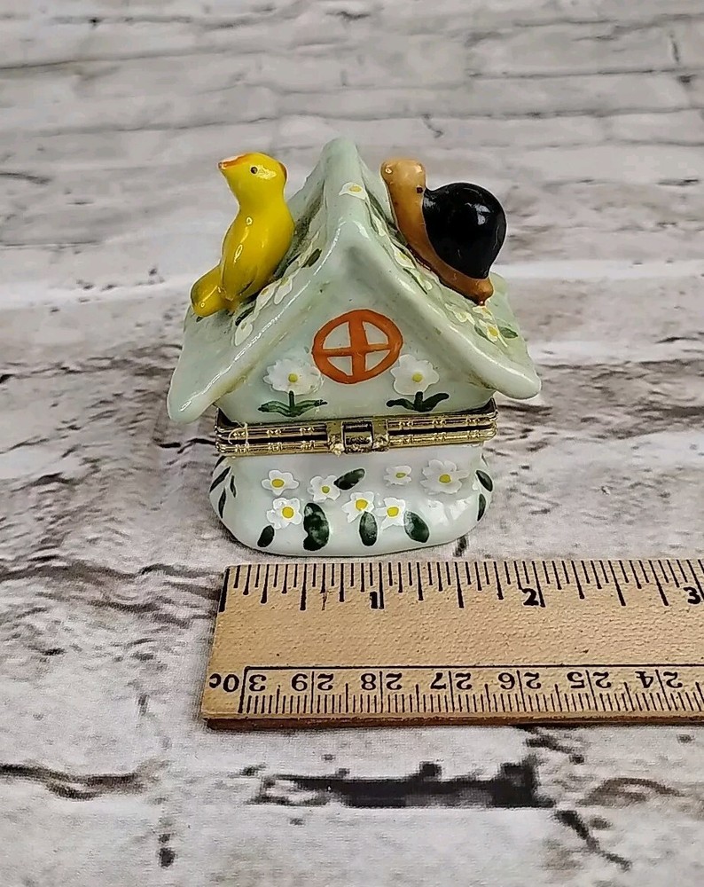 This beautiful collectible trinket box is a must-have for any bird enthusiast. The square shape and glossy finish of this small box make it a perfect addition to any decor. The yellow bird character adds a touch of whimsy to the multicolor porcelain design. This original piece is boxed and ready for display or storage. It is perfect for storing small items such as rings, bracelets, or other trinkets. The box is made of high-quality porcelain and is sure to last for years to come. Add this unique piece to your collection today!