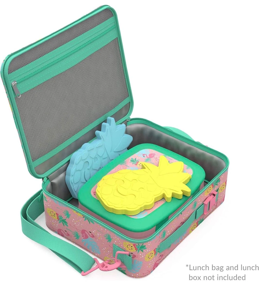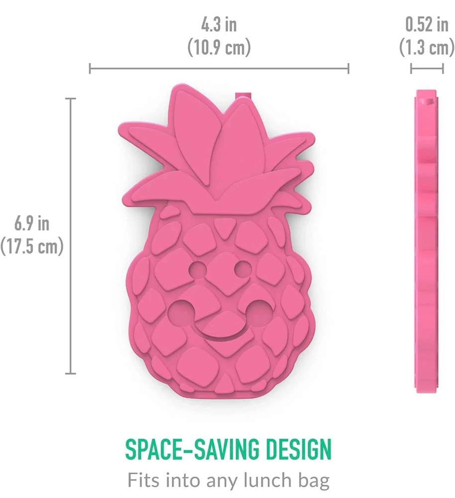 About this item Charming & Colorful: Add a touch of fun to lunchtime with this 4-piece set of ice packs in kid-friendly designs and bright hues Keeps Food & Drinks Cold: Freezes quickly and helps food and beverages stay cold up to 4 hours — ideal for school, work, picnics, game day, and more. Ultra-Slim Design: Measuring just about 0.5” thick, each slim ice pack fits perfectly into any lunch bag or cooler and leaves maximum room for food and beverages 100% Safe & Non-Toxic: Made with durable and reusable food-grade safe plastic that contains no BPA, PVC, phthalates, lead, or vinyl