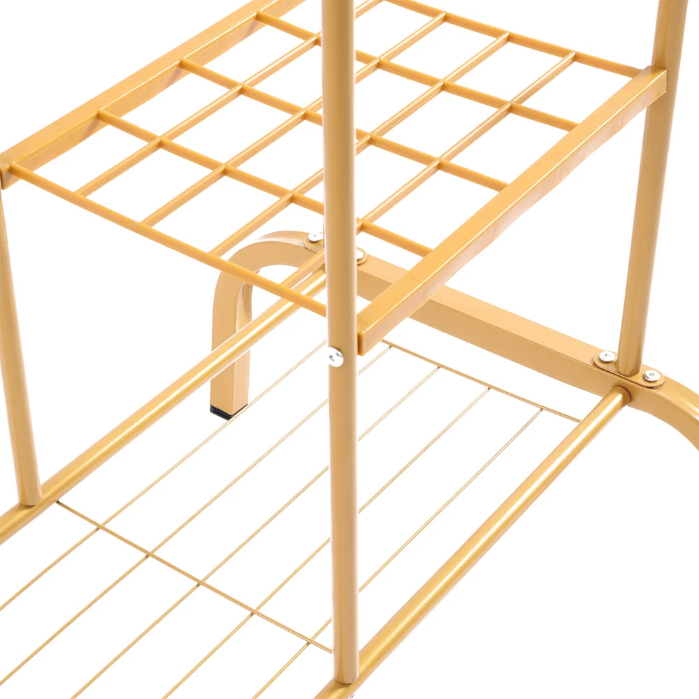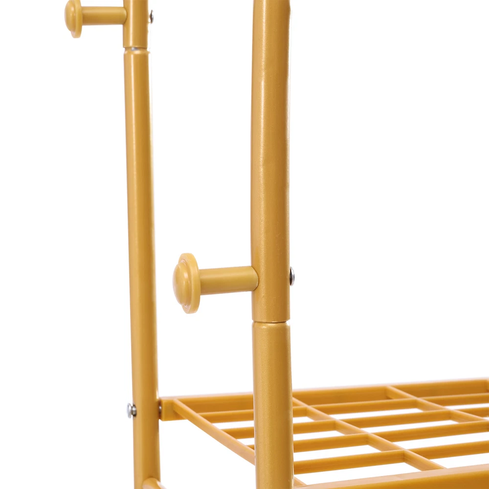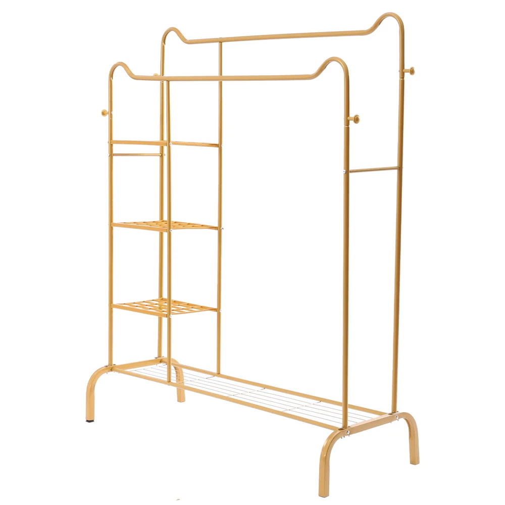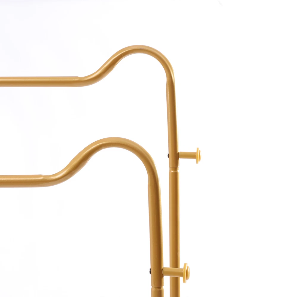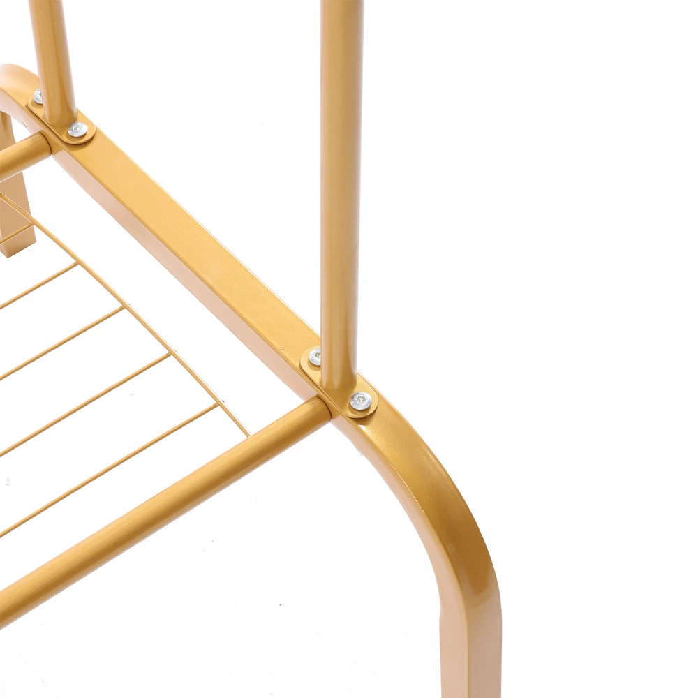 Features ✔Strong & sturdy:Made of sturdy metal frame makes it super stable and sturdy,no wobble and collapse.Wide hanging rail allows more storage for displaying clothes.Static load 150 lbs..Ideal for being a long-term closet storage organizer. ✔Premium Material:Featuring an all-metal design, this bright gold plumbing hanger is super functional and fits most spaces in your home or workplace; the outer powder coat resists water and rust. ✔Two storage methods:Not only can it be hung, but also designed with a clothes storage area, which can place stacked clothes, bags, hats, decorative flower pots, etc. . There are two hooks on both sides, you can also hang scarves, hats, bags, etc. to increase your storage space. Specifications: Color: Gold Material: Metal Pipe Size:51.2''L*19.7''W*61H Clothing Rack Clothes Stand Garment Rack Heavy Duty Multifunctional with Shelves Features ✔Strong & sturdy:Made of sturdy metal frame makes it super stable and sturdy,no wobble and collapse.Wide hanging rail allows more storage for displaying clothes.Static load 150 lbs..Ideal for being a long-term closet storage organizer. ✔Premium Material:Featuring an all-metal design, this bright gold plumbing hanger is super functional and fits most spaces in your home or workplace; the outer powder coat resists water and rust. ✔Two storage methods:Not only can it be hung, but also designed with a clothes storage area, which can place stacked clothes, bags, hats, decorative flower pots, etc. give you more choices. There are two hooks on both sides, you can also hang scarves, hats, bags, etc. to increase your storage space. ✔Multipurpose:add extra clothing storage to any space with this garment rack.Whether for a bedroom,guestroom or laundry room,this chic hanging rack is perfect for visible closet storage. ✔EASY TO ASSEMBLE:comes with all accessories and illustrated instructions;easy to put together or take down for compact storage. Specifications: Color: Gold Material: Metal Pipe Size:51.2''L*19.7''W*61''H Static load bearing:150lbs GOLD GARMENT RACKS - Simple structure and classic design make the retail gold clothes racks convenient for you to install. - Simple structure and classic design make the retail gold clothes racks convenient for you to install. - Foot pads designed to prevent scratching your floor. - Lightweight :Suitable for retail store,laundry room,bedroom,boutiques. Payment Delivery details Terms of sales About us Contact us Payment We accept ebay payment 。 Fees such as import duties, taxes are not included in the item price or shipping costs. These charges are the buyer's responsibility. Delivery details Shipping: 2-9 working days to: USA Terms of sales We maintain high standards of excellence and strive for hundred percent customer satisfaction. Feedback is very important to us. We hope that you contact us immediately before you give neutral or negative feedback, so that we can address your concerns. It is impossible to address issues if we do not know about them! About us Your satis faction is our ultimate goal. We work hard to earn your trust and future business. Our certified technicians have tested each item before shipping. The unit comes with 1 year limited warranty on all manufacturing defects. a) If you receive a defective item, you may return it or ask for a discount. Please contact us within 14 days after you receive the package. b) What you returned must be intact and in its original packaging as re? u. Customer is responsible for shipping costs of the returned item. c) We will cover the cost of shipping back t with the shipping rate indicated in the registration page. We will send you a new unit or refund the full payment you paid. Thank you. Contact us Business Hour Business Hour: Monday To Friday: 8:30 AM to 5:00 PM (Beijing China time) Due to time zones, our reply to your questions may not be immediately. But within above working time, we will reply your email within 24 hours. If it's non-workdays, please kindly be patient and wait till Monday. Please contact us with ebay message. Please feel free to contact us if you have any questions. Monday To Friday: 8:30 AM to 5:00 PM (Beijing China time) Due to time zones, our reply to your questions may not be immediately. But within above working time, we will reply your email within 24 hours. If it's non-workdays, please kindly be patient and wait till Monday. Please contact us with ebay message. Please feel free to contact us if you have any questions.