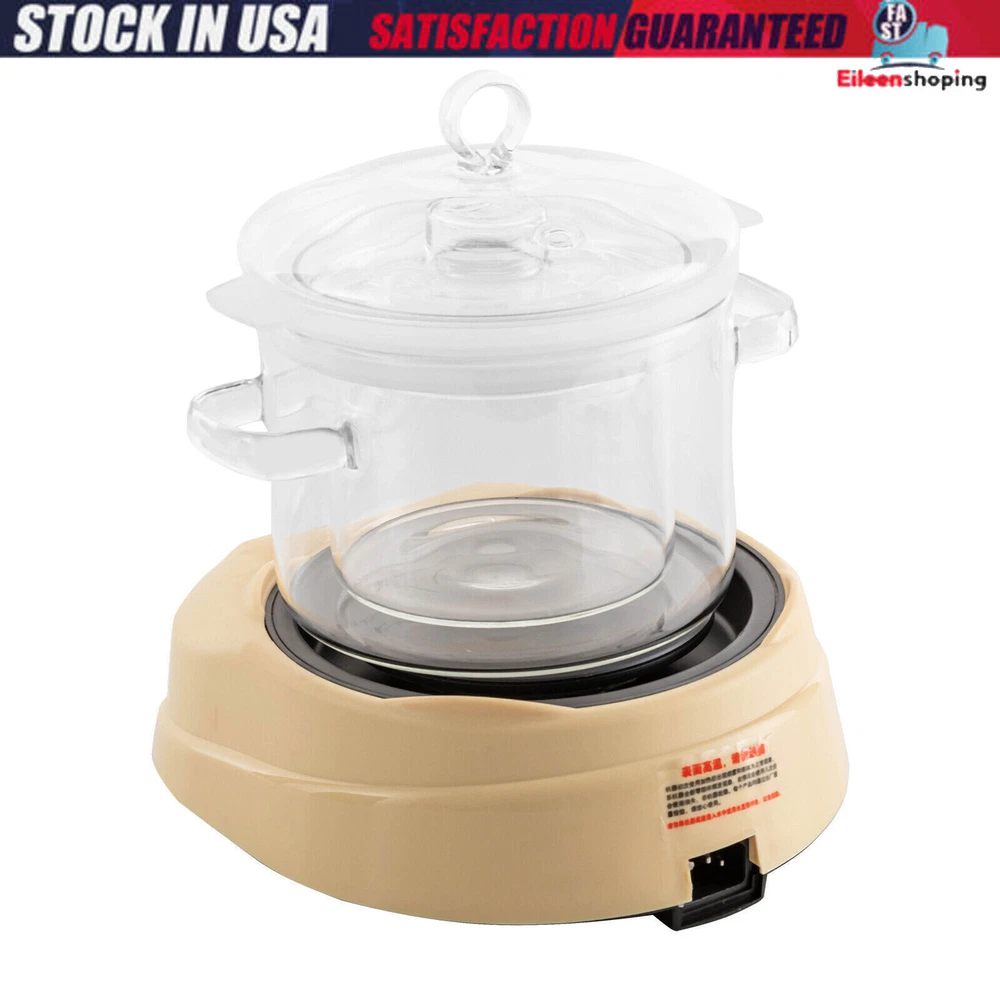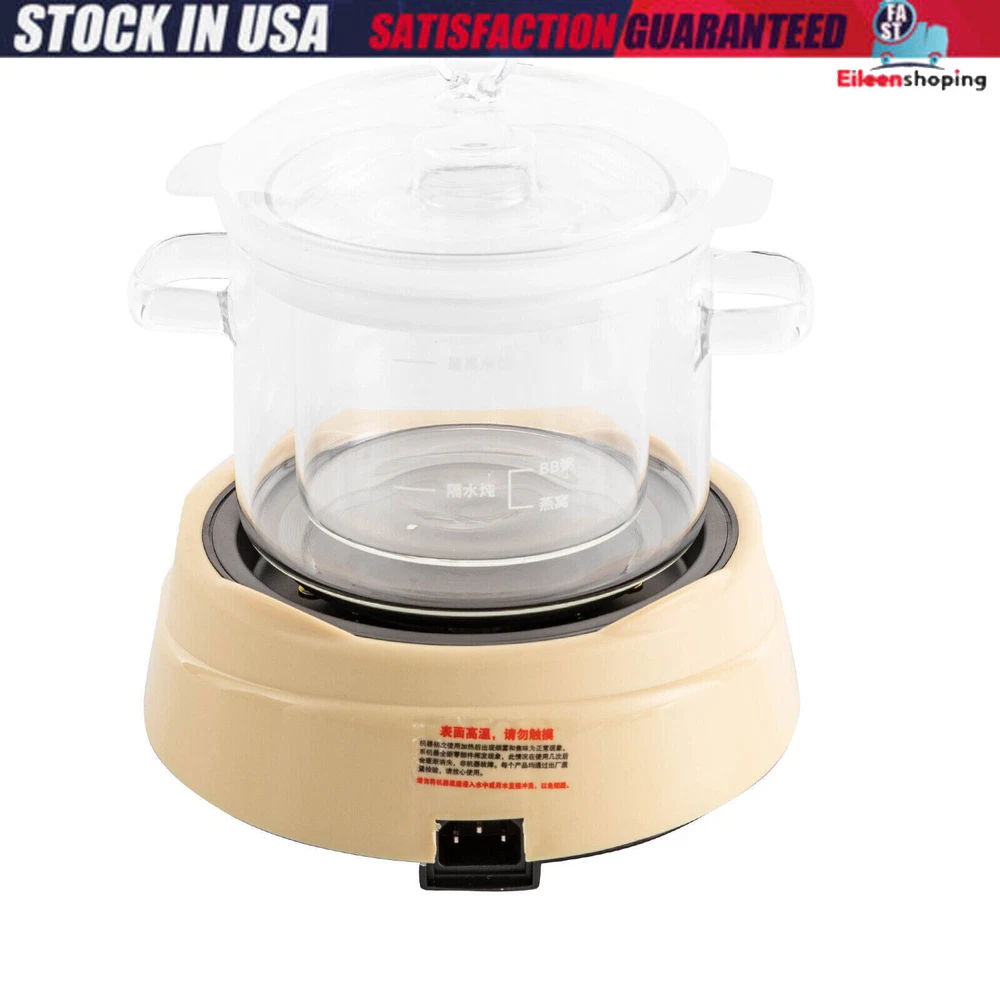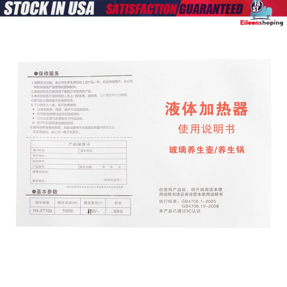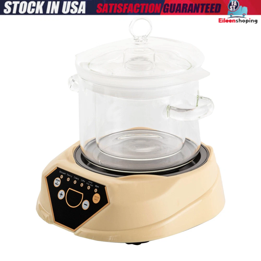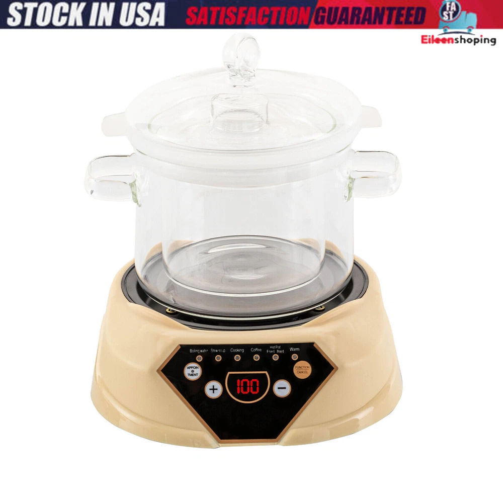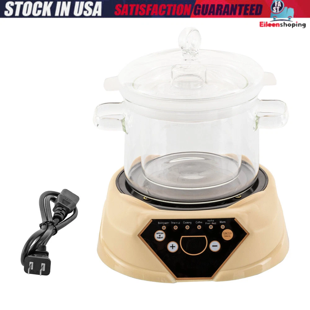 Multifunctional Health Pot Auto Electric Stew Pot For Making Tea Porridge Pot Specification Color: Clear, Cream Yellow Style: Modern Material: High Borosilicate Glass Plug Type: US Standard Power: 700W Voltage: 110V Frequency: 60Hz Power Source: Electric Controls Type: Panel Number of Items: 1 Maximum Temperature: About 300℃/572 °F Length of Power Cord: About 85cm/33.46inch Heat Preservation: 8 Hours Reservation Appointment: 30 Minutes to 12 Hours Capacity of Glass Pot: 1.6L/67.63oz Capacity of Glass Stew Pot: 0.8L/33.81oz Product Care Instructions: Hand Wash Gross Weight: 2.2kg/4.85lbs Net Weight: 2kg/4.4lbs Size of Base: 21*24*7.5cm/8.3*9.4*3inch Size of Glass Pot: 15(L)*15(H)cm/5.9*5.9inch Length of Glass Stew Pot: 15.5cm/6.1inch Height of Lid: 7.5cm/3inch Height of Container: 9.3cm/3.66inch Diameter of Base Top: 17cm/6.7inch Diameter of Heating Area: 12cm/4.7inch Package Size: 35.5*24.5*27.5cm/13.98*9.65*10.83inch Package Included 1* Glass Pot 1* Glass Stew Pot 1* Chinese Manual 1* Power Cord 1* Base Key Features High-quality Material : This port is made of high borosilicate glass with strong fracture resistance , high-temperature resistance , high hardness, transmittance, and stability, and does not pose a threat to the human body. The clear design also facilitates you to check the situation in time. High Efficiency: The product with an overall power of 700W adopts a whole circle of the heating plate, which can realize uniform and quick heating, so it can make fragrant and exquisite tea or coffee for you without waiting for a long time. Large Capacity: The port is equipped with a 1.6L/67.63oz glass pot and a 0.8L/33.81oz glass stew pot so that you can make enough coffee, tea, drinks, etc. at one time, which is very convenient. Multiple Functions: This port can be used to make fragrant tea, soup, porridge, stew, dessert, etc. At the same time, it also has the functions of heat preservation(8 hours), and reservation (30 minutes to 12 hours), which fully meet your daily needs, with high-cost performance. Safe to Use: The maximum temperature that the glass can withstand is 300℃/572 °F. At the same time, it has the functions of preventing high temperature, boiling automatic jump, preventing dry burning, etc, and it is designed to be airtight, providing a strong security for your use. Good Heat Dissipation Effect: The bottom is equipped with heat dissipation holes, which can timely reduce the temperature of the product during operation, avoid potential safety hazards, and extend the service life. Simple Operation: The product does not need to be assembled, and when you select a function, the product will have a beep prompt. It can be operated without complicated steps, saving you time. Quiet Environment: The product makes a low noise during operation, which will not affect you. You can fully concentrate on reading, working, etc. Beautiful Appearance: The product is designed with clear and cream-yellow color and smooth lines. It is full of modern and fashion sense and can match the living room and kitchen with various decoration styles. Easy to Clean: It adopts a split design and large diameter design and has a smooth surface and a simple structure, so you only need to wipe the dust or residue with a towel after use. Compact and Lightweight: The product is small, and the net weight is only 2kg/4.4lbs, so you can put it on the coffee table and kitchen at will without occupying much space, and it is also very convenient to move and carry. Ideal Gift: With good performance and fashionable appearance, this product can be used as a gift for parents, friends, and lovers, as well as as a housewarming and holiday gift so that they can also enjoy more exquisite drinks. Enjoy Life: With this product, you can make different foods and drinks for your family, especially for the baby and the elderly. The sense of ritual and happiness in life will follow. Details Solid Base : The base equipped with four anti-slip foot mats can ensure that the product is more stable and not easy to shake during use. Long Power Cord: This port is equipped with a power cord with a length of about 85cm/33.46inch, allowing you to have plenty of length at your disposal. Practical Sieve: The opening of the glass pot is equipped with a removable stainless steel sieve, which can effectively filter the residue and facilitate your cleaning. Glass Lid: The lid with a silica gel sealing ring is heat-insulated and hot-resistant , which can prevent dirt and dust from entering the container and avoid water leakage. The handle on the top is also convenient to open and close. In addition, the lid is also provided with a steam hole, which can maintain the stability of the air pressure in the pot. Double Ear Handles: These two handles are durable, easy to hold, and are convenient for you to move. Independent Power Socket: The socket is easy to clean, waterproof , and has a high safety factor. Display Screen: The operation panel of the product is equipped with a display screen, which can clearly display the time so that you can check the situation and make adjustments. Round Corners: This product adopts an arc design, which can effectively prevent your skin from being scratched compared with the traditional square corners. Application This health port can be widely used at the home, office, RV, party, and tea house for boiling tea, water, coffee, and milk, making soup, porridge, and dessert, stewing, cooking gruel, etc. Notes 1. Please read the operating manual completely before use. And pay particular attention to the safety instructions included. 2. Please note that the health pot shall be tested with clean water before delivery. It is normal that there may be water stains. 3. The surface of this product is very hot during operation, please do not touch it. 4. It is normal that smoke and a scorching smell appear after the machine is heated for the first time, which is the volatilization of new parts of the machine. This situation wil