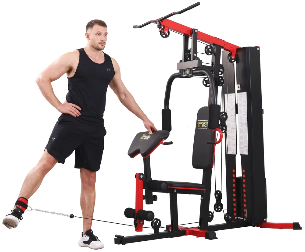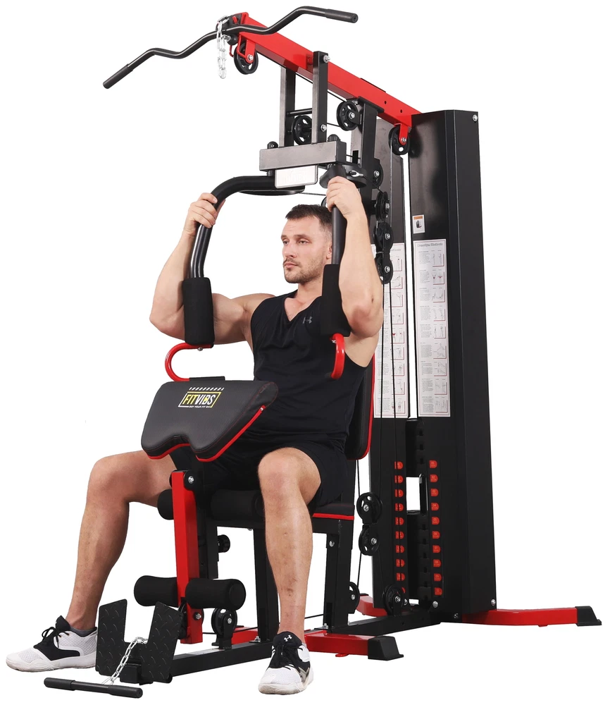 Fitvids Multifunctional Full Body Home Gym Equipment for Home Workout, Workout Station, Seat Adjustable, Ideal for Full Body Strength Training Premium Thick Steel Home gym workout station is made of high-quality steel, and the frame and counterweight guard are made of thick steel. Ready to tackle any weight challenge anytime. Multifunctional Full Body Gym Equipment Multifunctional exercise equipment fulfills comprehensive body workout needs, enabling a variety of exercises including double-arm curls, bicep training, double-arm presses, single-arm rows, seated chest presses, prone chest presses, and bent-over lifts. This single machine is all you need to build your own personalized home gym. Adjustable Seat Home gym workout station features a newly upgraded adjustable seat, catering to users of different heights and allowing for various seated positions during workouts to effectively target multiple muscle groups. 【Weight Plates】This multifunctional training equipment includes weight plates, providing increased weight options for achieving higher levels of difficulty in your workouts. Easy Assembly We offer comprehensive assembly instructions to help you effortlessly set up your home exercise equipment, along with usage guidelines to aid in sculpting and toning your muscle.