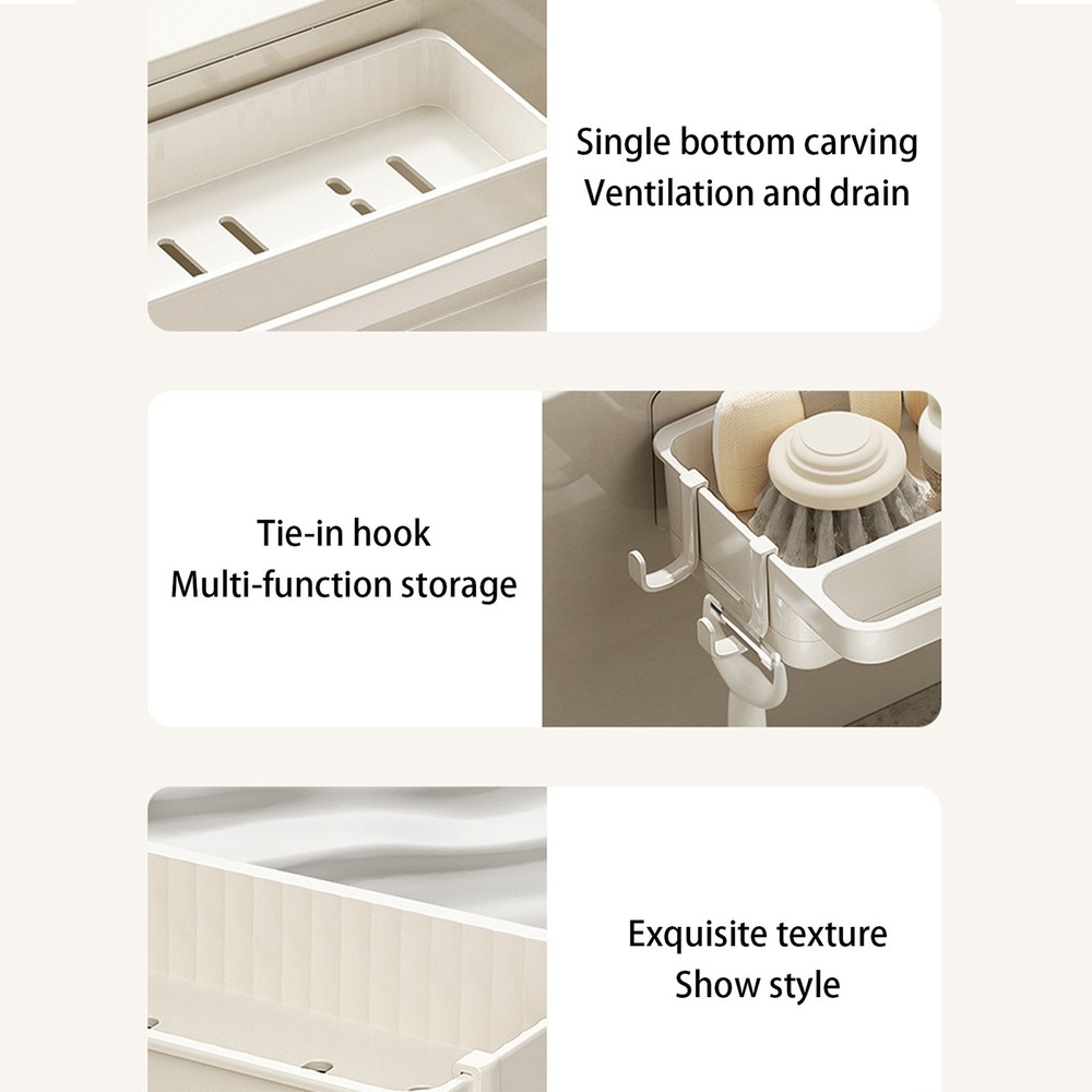 Sink Sponge Rack Multi-Function Sink Faucet Countertop Storage everywhere Product Description Bullet Points: Various Functions: Enhance your kitchen to the next standard of organization with this versatile kitchen sponge rack. Its multi-functional design makes it a must-have for not only storing sponge wipes and rags but all your cleaning products like wire balls, detergents, and more Efficient Water Drainage: Say goodbye to sponges that quickly wear out. Our kitchen sponge rack features a unique draining design that allows for efficient water drainage, keeping your cleaning tools dry and extending their lifespan Excellent Strength: Constructed with wear-resistant material for excellent strength, this kitchen sponge rack is safe to use and won't break easily, ensuring a long-lasting sink organizer Improves Efficiency in The Kitchen: The sink sponge rack, with its compact design, maximizes the use of space, suitable for various kitchen layouts, saving space and improving efficiency by keeping frequently-used cleaning supplies together for easy access Widely Used: With a sleek and minimalist design, this sponge holder is great not just in the kitchen but also for the bathroom, toilet, and more. You can enjoy stylish and functional storage that meets different needs Keep your kitchen organized with our Sponge Rack. Its multi-functional design makes it a must-have item. The strong toughness ensures it'll last a long time, staying dry on the countertop or at the sink. With a simple appearance design, it suits a variety of home fashions and keeps frequently-used cleaning supplies together for easy access. Specification: Product name: kitchen sponge rack Color: cream white Product Size: about 28x14x5.5cm/11.02x5.51x2.17 inches Material: pp Packing List: 1 x kitchen sponge rack Note: Due to different lighting and screen settings, item colors may vary slightly from the pictures. Due to the difference in manual measurement, please allow a 1-2cm difference in size. Payment 1.PayPal is a preferred Payment method. if you Do NoT have a Paypal account, please go to www.paypal.com register. 2.You can make a Credit payment via Paypal.Paypal will let you use MasterCard,Visa to pay. 3.Payment should be completed within 3 days after auction closed, or unpaid dispute will be filed for an closing auction.An unpaid case will be filled after 4 days. Delivery details 1. We ship to many countries. 2. Delivery Time: Ship from China via Speedpak to US (takes 8-12 days) Ship from China via others shipping method to other countries (takes 15-60 days) 3. If you want to choose another address, please leave us a message on ebay.Please check your shipping address carefully before checkout,it can't be changed if order completed. Seriously promise:Refund or resend will be offered if item still not arrive in 7-10 business days. Just send us an email,we will give you a satisfied solution as soon as possible. Return policy 1.All item comes with Basic 3 Months Sellers Warranty, if item defective in 3 months,We will offer replacement without extra charger (including shipping fee) After we receive the defective item. If item Defective after 3 Month, Buyers can still send it back, We will contact suppliers or Manufactory for Warranty. Buyers Might Need pay the Shipping fee For resend the replaced item. 2.If item DOA(Dead of Arrival), Buyers can return it in 30 Days, we will replace it with new item after we receive DOA item. Please Contact us Before you sent the item back. 3.All item can be returned for exchange only. The buyer has responsibility for all return shipping including DOA or defective return. About Feedback When you receive the item and satisfied with the product, please leave positive feedback and 5 scores DSR. We will leave a 5 Scores DSR feedback for you. If, for any reason you are not satisfied with your purchase, please contact via Ebay Message and we will do our best to resolve it. Please don't leave neutral or negative feedback without any communition with .