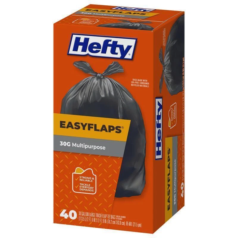 You may also like 3-Burner Gas Stove for Big Outdoor Cooking 30000 BTU 608 Sq in Cooking Space Red 448.86 USD Free shipping Ultra Light Flexible Quarter Inch 100 Ft Air Hose Perfect Roofers Contractors 49.05 USD Free shipping Heavy Duty Carport Canopy Extra Large Portable Car Tent Garage W/Roll-Up Windows 329.17 USD Free shipping Folding Luggage Cart Transport Moving Cart Hand Truck, Black, 75lbs Capacity 33.06 USD Free shipping 6 Piece Plastic 192 In Super Wide Baby Gate Play Yard 2 In 1 Ages 6 24 Months 79.79 USD Free shipping Commercial Lightweight Backpack Baggged Vacuum Cleaner for Carpet & Hard Floors 421.94 USD Free shipping Beveled Mirror Medicine Cabinet 12 X 36 In Frameless Durable Plastic Adjustable 76.12 USD Free shipping Rolling Sewing Machine Storage Transport Tote Triangles W/ Wheels Clear Pockets 63.84 USD Free shipping 12V UltraSafe Portable Lithium Jump Starter Car Battery Booster Pack Powerbank 432.83 USD Free shipping Professional Compact 120V Bench Grinder Sharpenern Garage All Chainsaw Chains 282.14 USD Free shipping Bread Box Steel Fingerprint Proof 21 X 11 X 8 In Handy Large Capacity Durable 77.75 USD Free shipping Grind Rail 55 In Long 3 Step Adjustable Height Extra Stability Practice Skate 73.15 USD Free shipping Hefty Strong Large Multipurpose Trash Bags help you tackle cleanup jobs all around the house, thanks to their Hefty! Hefty! Hefty! strength and large capacity. With their 30 gallon size, these garbage bags are ideal for storing donations, seasonal decorations, everyday kitchen trash and more. Signature Hefty quality ensures these large trash bags deliver superior puncture resistance for outside and inside jobs. Plus, with the Easy Flaps closure, these plastic trash bags make removal and transporting easy; simply tie shut and carry out to the car or curb. Count on these plastic trash bags for the strength and reliability you expect from Hefty. Don’t forget: all Hefty trash bags are backed by a 100% satisfaction guarantee. Hefty Easy Flaps Multipurpose Large Trash Bags, 30 Gallon, 40 Count Handy Easy Flaps® closure. Economical alternative to drawstring trash bags. Smart Vinyl Permanent Sampler Decals Outdoor Projects Easy Use 5 Sheets 6.69 USD Free shipping 5-Cup Drip Coffee Maker Removable Filter Auto Keep Warm Function Easy Operate 14.7 USD Free shipping 66 Quart Wheeled Underbed Storage Box Latching Lid Clear Organizer Space Saving 29.42 USD Free shipping Aluminum Baking Pans W/ Lids 2 Count Ideal Casseroles Desserts Parties Teal New 15.34 USD Free shipping 15lbs Oak & Hickory Lump Charcoal Hot Clean BBQ Flavor Grills Smokers & Kettles 20.57 USD Free shipping EZ Carry 120 Quart Clear Storage Box W/ Handles Stackable Household Organizer US 21.31 USD Free shipping 21 Gallon Drawstring Trash Bags Unscented Leakproof Puncture Resistant 45 Count 12.03 USD Free shipping 2 Slice Stainless Steel Toaster Adjustable Browning Control Wide Slot Easy Clean 29.44 USD Free shipping 4-in-1 Multi-Function Jar Opener Tabs Can Lids Packaging Blade Prep Solutions US 18.05 USD Free shipping Paper Napkins White 400 Count Big Celebrations Bounty Napkins Family Dinners New 9.39 USD Free shipping 2-Slice Retro Toaster W/ 7 Browning Settings Bagel & Waffle Function in Black US 28.32 USD Free shipping Rechargeable Cordless Handheld Vacuum W/ Attachments USB Charging Lightweight US 29.27 USD Free shipping