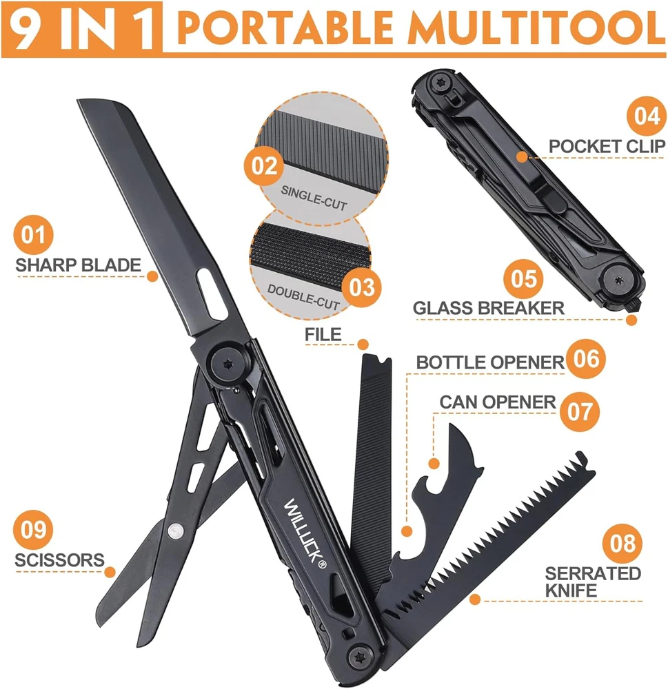 Gifts for Men: Looking for the ideal gifts for men or stocking stuffers for men? Look no further, our product is the perfect christmas gifts choice. Don’t hesitate, it’ll be a flawless selection. Its wide range of capabilities makes it the perfect companion for any task, whether it’s camping, DIY projects, or everyday needs. Imagine how surprised he will be to receive this mens stocking stuffers & birthday gifts for men Versatile Tool: A 9-in-1 multitool that combines convenience and versatility like no other. This extraordinary tool boasts a pocket knife, scissors, double-sided file, saw, bottle opener, can opener, belt clip and even a glass breaker. With its exceptional functionality and practicality, it’s an ideal christmas gifts for men, stocking stuffers for men - pocket knife Exquisite Craftsmanship: Made from sturdy stainless steel, it is rust-resistant and withstands sweat corrosion. This is an exquisite multi-tool with a comfortable grip. The design considers the human body structure, providing a comfortable hold and an effortless user experience. This tool combines convenience and durability, making it the perfect companion. It is a wonderful gifts for men or mens stocking stuffers Convenient for Carrying: Carrying it is like having a toolbox in your pocket, ready to meet your basic needs. This practical christmas gifts cleverly combines various tools into one, with a compact design. It comes with a belt clip for easy carry, always by your side. It will be Ideal gifts for men who have everything, christmas stocking stuffers Stocking Stuffers for Men & Birthday Gifts for Men: No matter if it’s Father’s Day, Valentine’s Day, Anniversary, Christmas, or any other holiday, this product is the perfect gifts for men you love the most. When he receives this stocking stuffers for men, he will feel your deep affection and be impressed by its practicality. This tool will be one of the most memorable gifts for men he has ever received Product Description YOU’LL BE OVER THE MOON WITH THIS FANTASTIC GIFTS FOR MEN! It is the perfect gifts for men. Not only is it a practical tool, but it also carries a heartfelt message that will surely touch his heart. A 9 IN 1 PORTABLE MULTITOOL THAT STANDS OUT FROM THE PACK The video showcases the product in use. The video guides you through product setup. The video compares multiple products. The video shows the product being unpacked. FEATURE-PACKED This feature-packed product offers a multifaceted design with a compact overall form. HIGH QUALITY MATERIAL This product is treated to prevent rust and corrosion, ensuring long-lasting durability with its high-quality materials. SAFETY LOCK DESIGN Equipped with a safety lock design, this product tool ensures both safety and stability during use. EASY TO CARRY It cleverly combines various tools into one. The tool comes with a belt clip for easy carry, always by your side. THE PORTABLE TOOL - RELIABLE COMPANION FOR MEN SHARP BLADE This tool boasts a sharp blade for precise and effortless cutting. SCISSORS These scissors are designed for smooth and accurate cutting, making them a reliable tool for various tasks. SAW This saw is built to tackle tough materials with its sharp teeth, offering precise and efficient cutting. GLASSES BREAKER The glasses breaker is a compact and powerful tool designed to quickly and safely shatter car windows in emergency situations. SUITABLE FOR VARIOUS SCENARIOS FILE The file is a versatile tool with a rough surface used for shaping, smoothing, and removing material from various surfaces with precision. BOTTLE OPENER Easily pop open bottles and enjoy your favorite beverages with this handy tool that effortlessly removes bottle caps. CAN OPENER The can opener is a handy tool for effortlessly removing lids from cans. No matter the occasion, this versatile tool is the wonderful gifts for men or stocking stuffers for men. Whether it’s Christmas, Birthday, Fathers Day, Anniversary, such a thoughtful mens gifts will surely make him feel your love and consideration. How much does this portbale tool weigh? The weight of this product is 0.33LB, which is extremely lightweight and easy to carry. What functionalities does this protable multi-tool offer? This extraordinary tool boasts a knife blade, scissors, file, serrated knife, bottle opener, can opener, and even a glass breaker. What is the multifunctional knife made out of? The 9 in 1 portable multitool is crafted using top-grade stainless steel, ensuring exceptional durability and longevity. The handle features a unique non-slip design, providing a secure and comfortable grip. What are the dimensions of this pocket multitoolr? You can refer to the product images for detailed information regarding its size and dimensions. The images provide a visual representation of the product, including any measurements that may be relevant to you. -WILLUCK- MORE IDEAL GIFT OPTIONS Add to Cart Add to Cart Add to Cart Add to Cart Customer Reviews 4.5 out of 5 stars 76 4.6 out of 5 stars 1,908 4.5 out of 5 stars 90 4.7 out of 5 stars 3,078 Price $19.99 $ 19 . 99 $16.99 $ 16 . 99 $29.99 $ 29 . 99 $19.99 $ 19 . 99 STOCKING STUFFERS FOR MEN ✔ ✔ ✔ ✔ IDEAL GIFTS ✔ ✔ ✔ ✔ GIFTS FOR ANY OCCASION ✔ ✔ ✔ ✔ HIGH QUALITY ✔ ✔ ✔ ✔ VERSATILE TOOLS ✔ ✔ ✔ ✔