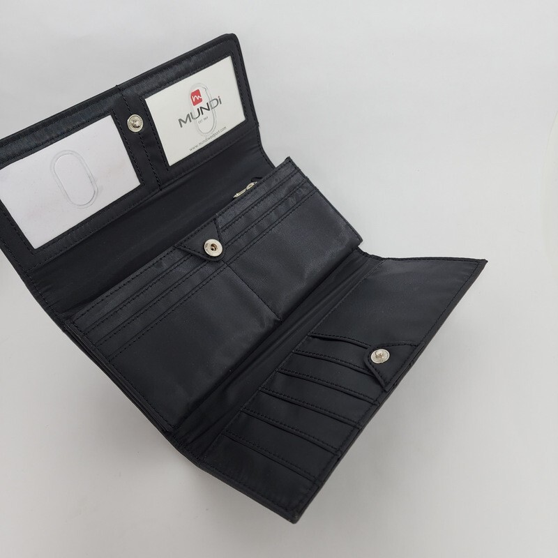 Mundi Black Wallet Credit Card Photo Receipts Coupons Cash Holder Safe Keeper Wallet Measures: 7.63 inches x 4 inches x 1.25 inches 2 ID Slots 12 Card Slots 1 long Slot 7 Inches Long 1 Zippered Pocket 1 compartment for each: Cash, Receipts and Coupons Brand New with tag * * * Images in this listing are taken by Abellasbeautystore to show the exact condition of the products being sold in our store. They can not be used by any other Ebay seller or website without our consent. Any seller using our images will be reported accordingly.