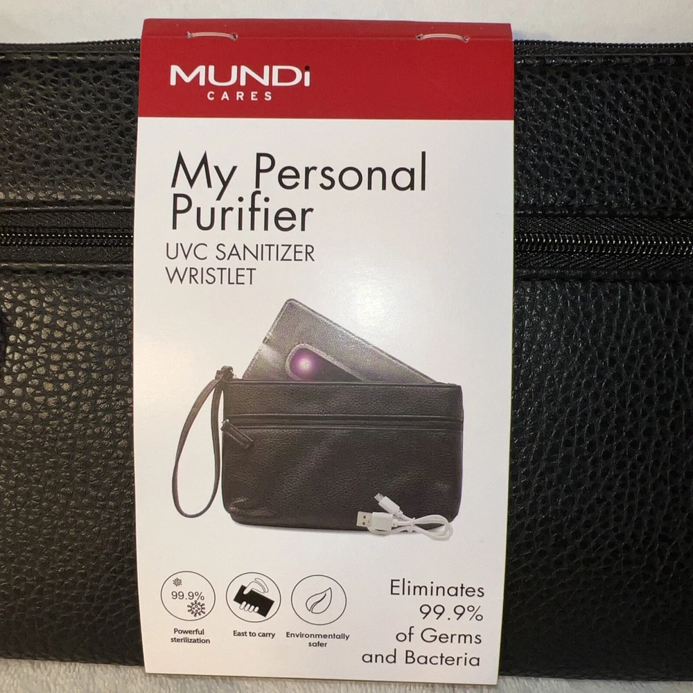 Mundi Cares “My Personal Purifier Zip Clutch Bag UVC Sanitizer USB Cord