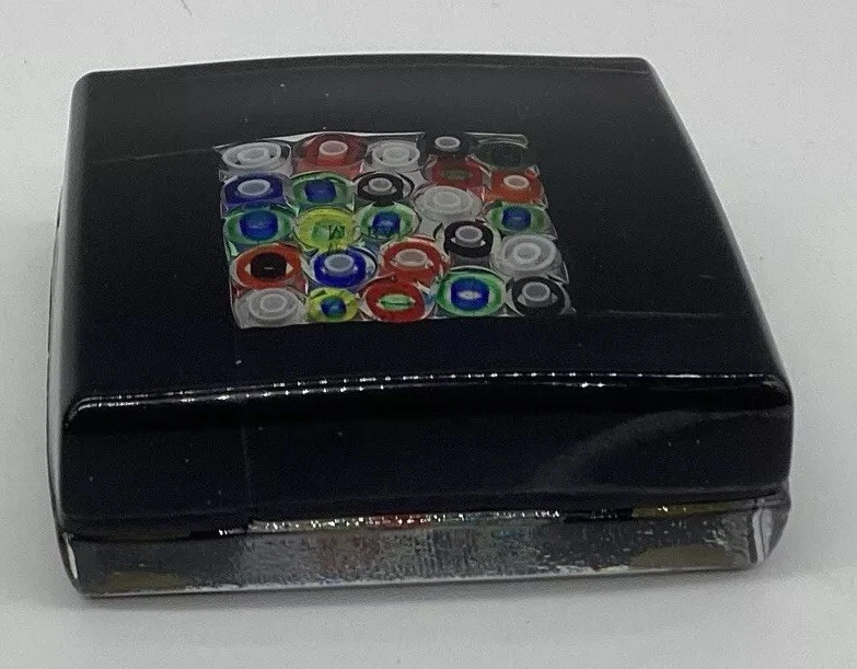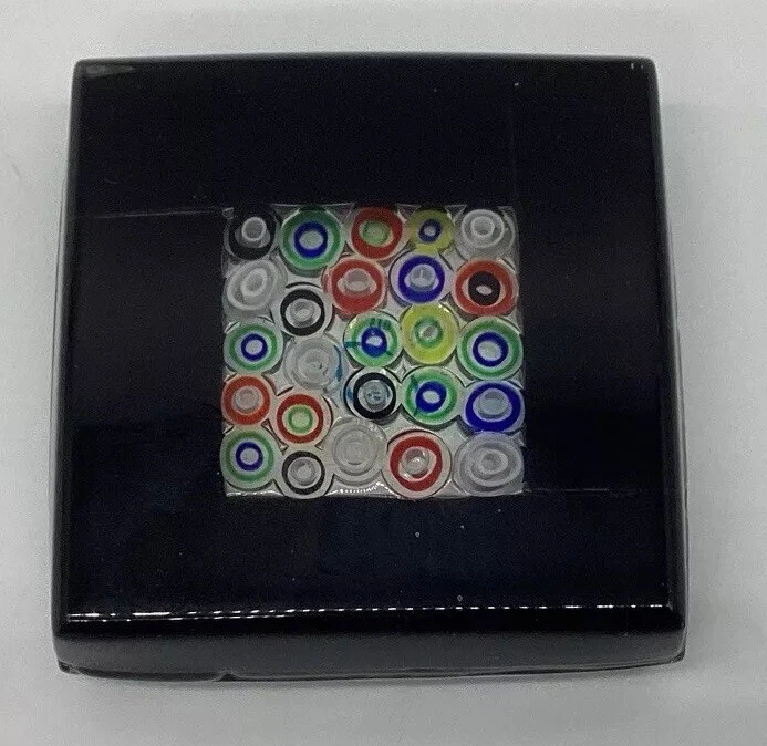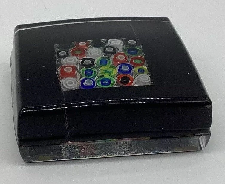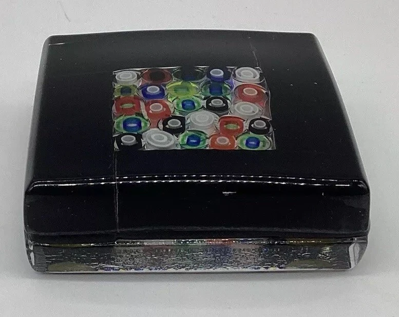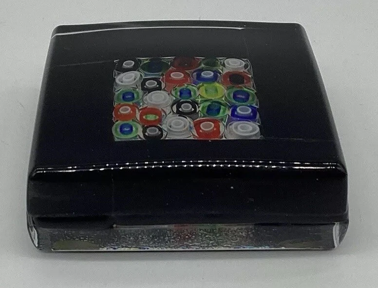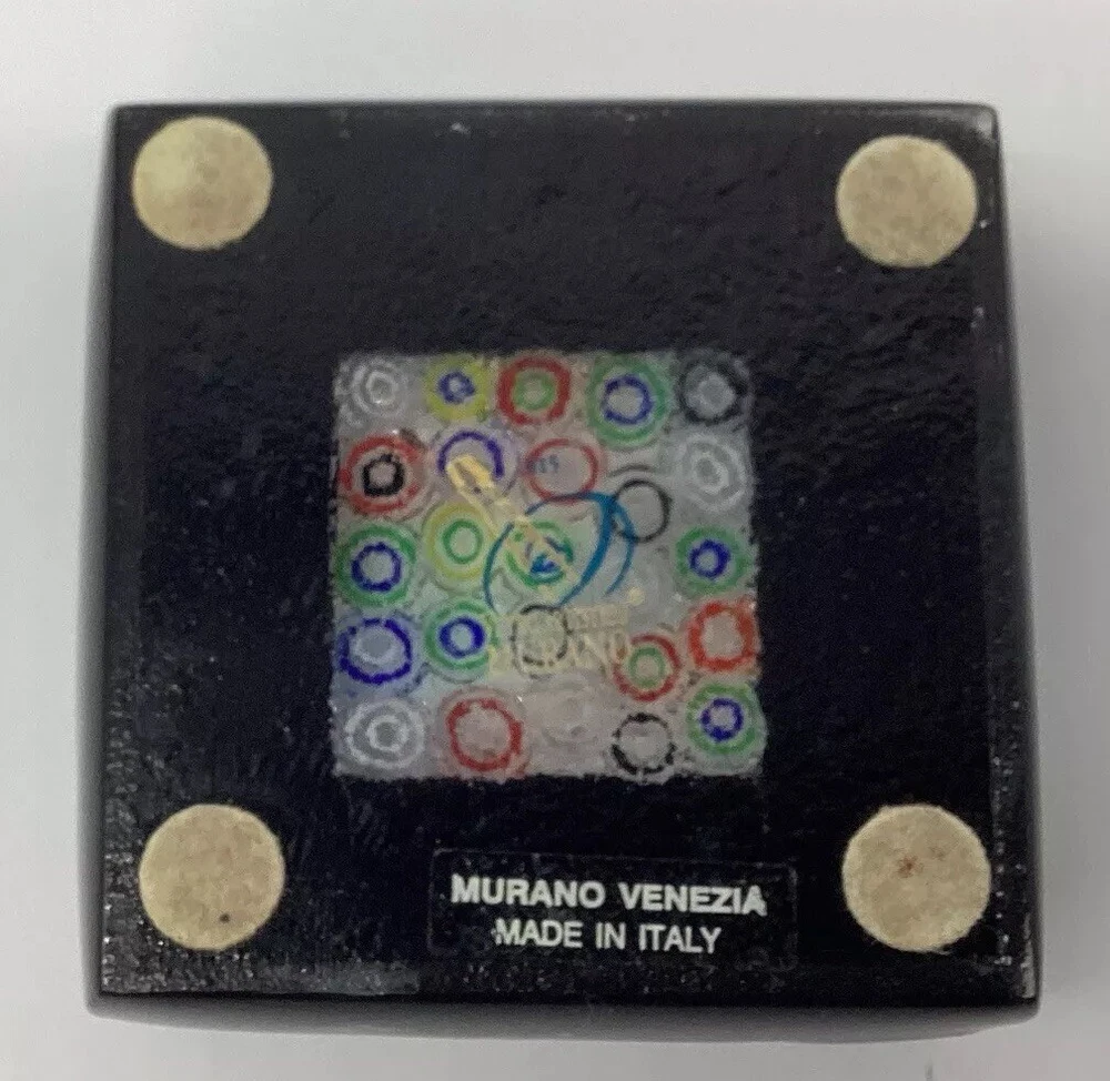 Murano Venezia Italy Millefiori Vetro Artistico Black Square Paperweight 2.5"