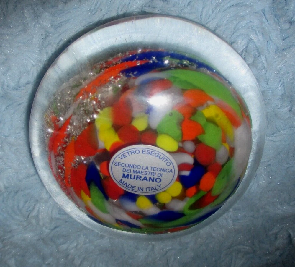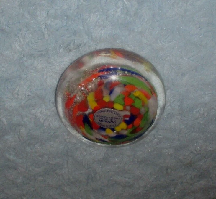 Origin: Italy Era: Modern Handmade: Yes Production Style: Art Glass Brand: Murano Original/Licensed Reproduction: Original Color: Multicolored gtin13: N/A Seller Notes: “NEW condition... no defects or damage.” Vintage: No Material: Glass Time Period Manufactured: 2010-2019 Product Line: Paperweight Production Technique: Colors inside Crystal Country/Region of Manufacture: Italy Pattern: Multi Finish: Shiny Theme: Multi Color Antique: No MPN: N/A Type: Paperweight UPC: N/A