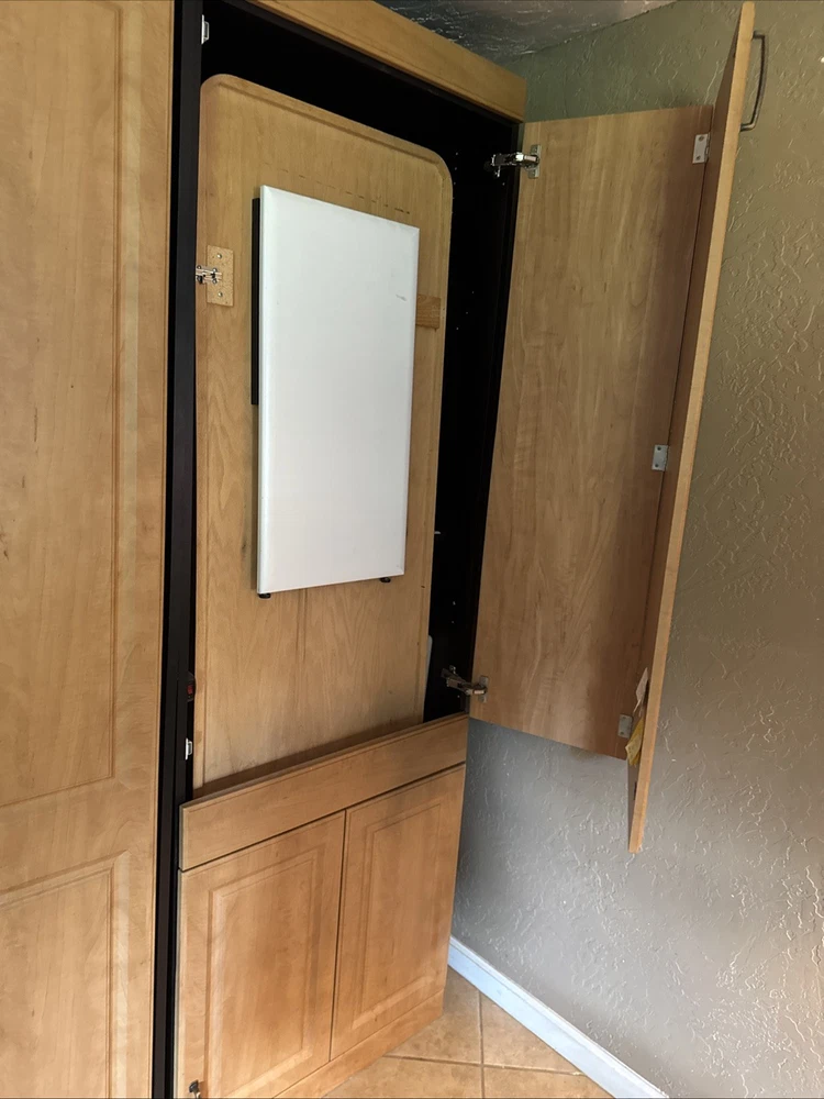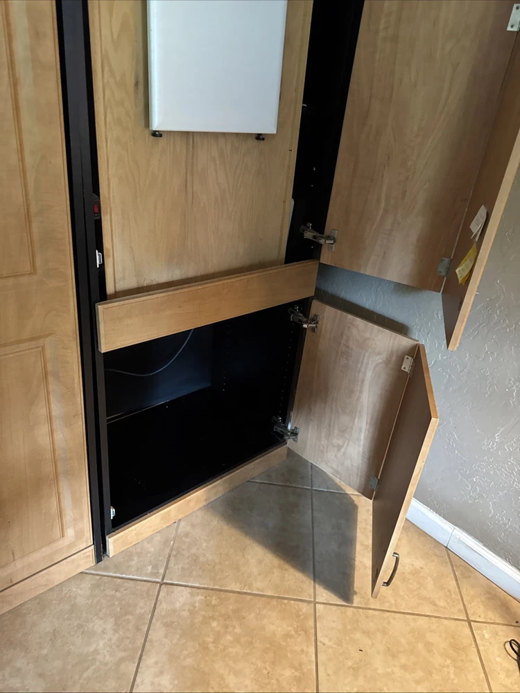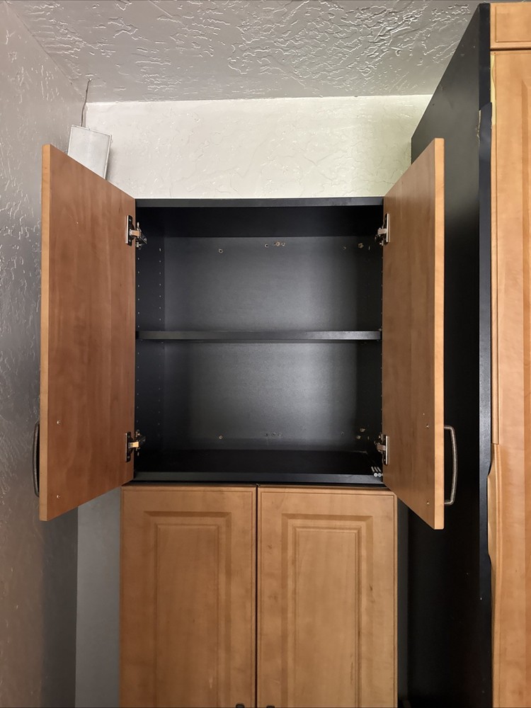 The Murphy Wall Bed Springs Hinges Mechanism Hardware Desk with Four Shelf Drawers is a functional and stylish addition to any bedroom. Made with a wood and metal frame, this Queen-sized wall bed is easy to care for and assemble. It comes in a classic brown color. This piece offers a convenient desk area with four shelf drawers for added storage, making it a versatile and practical choice for adults looking to maximize their space in their bedroom.