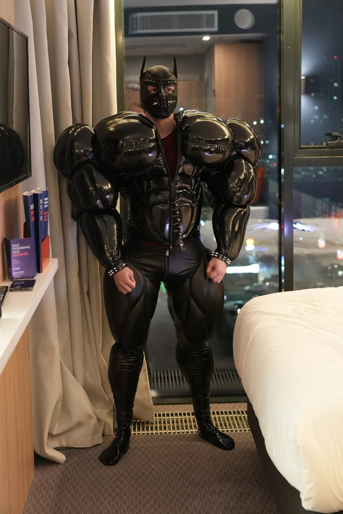 MUSCLE SUIT - EXTRA JACKET Handmade - zipboylatex The muscle suit is made of fabric and foam rubber. The muscles are soft and elastic, the muscles keep their shape, and after pressing the muscles restore their previous shape. The top layer of fabric is elastic and stretches well. The inside of the suit is made of white elastic fabric. The light weight of the suit and the elasticity of the fabric make it very comfortable to move. You can use the costume for different cosplay characters. Manufactuing muscle suit about 20-40 days. Worldwide Shipping about 10-20 work days. Other colors from this spandex fabric are available. SIZE GUIDE: Height for 170-195cm. (5.5-6.4ft) Chest for 34-48 inches Waist for 30-48 inches Hip for 19-32 inches. Biceps for 11-20 inches. Calf for 10-22 inches. Size is for body from minimum to maximum in inches. If your body measurements are larger than these measurements, then this size will not fit you. The muscle hold their shape and the fabric stretches very well so the size is suitable for many size. If you need a special size, we can custom make it for you. Write to me your body measurements: (Height, Weight, Chest, Waist). The mask and other accessories are not for sale. The price is for the muscle suit only.