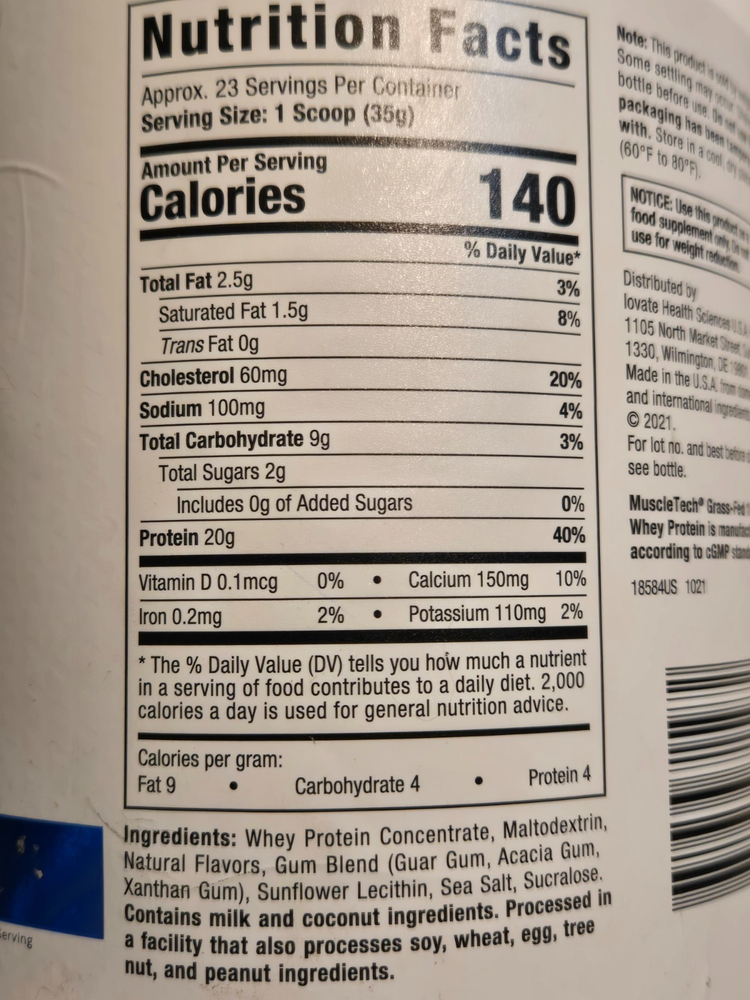 New Muscletech Whey Protein (rr25/120) 100% Grass-Fed Deluxe Vanilla 1.8 lbs BB 1/24/2028 From a smoke free home.