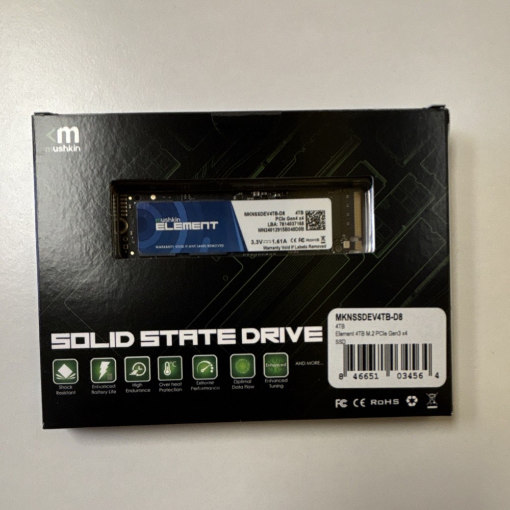 Mushkin Element 4TB M.2 PCIe Gen3 x4 Internal SSD, Shock Resistant