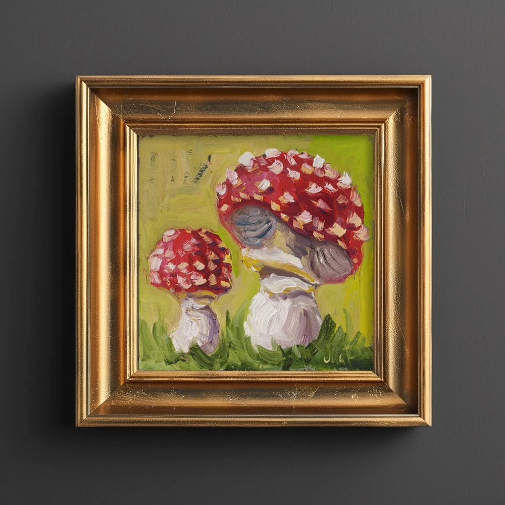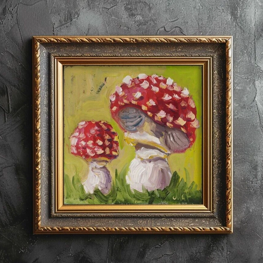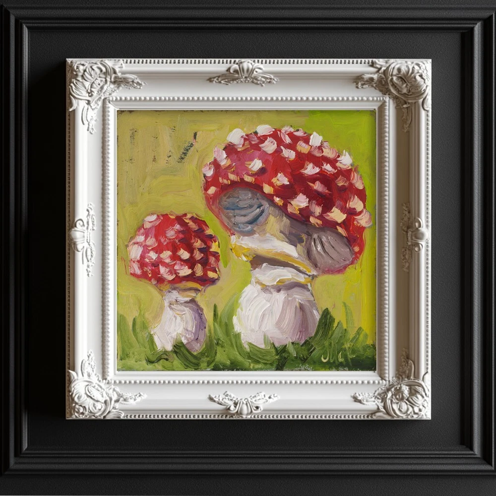 Mushroom Oil Painting Fly Agaric Original Art Amanita Artwork Clover painting Mushrooms oil art is an original oil painting, one of a kind hand-painted work of art. This is not a copy or print or reproduction. Just my art, directly from the artist - Nataly Mak. This painting is MADE TO ORDER, direct from my studio. The painting in the photo is already sold. Your painting will be very similar in color and composition, but not exact. 3 business days to paint, and 1-2 weeks or so to dry, as I work in oil. This painting also has impasto texture, which means thicker paint, and consequently a longer drying time. 🌈 Without frame 🌈 Materials: oil paints, cardboard ⭐ Size: 6x6 inches ⭐ I can draw a different size picture. Just contact me ⭐ On the front and back sides of wall art - the author's signature. Please note, that colors shown may vary from monitor to monitor, but I guarantee that the colors are vibrant. Open for commission ♥ Thanks for shopping and feel free to message me with any questions! I look forward to working with you! I ship with registered mail and you will get a tracking number. Thank you for your visit! Best Wishes, Nataly